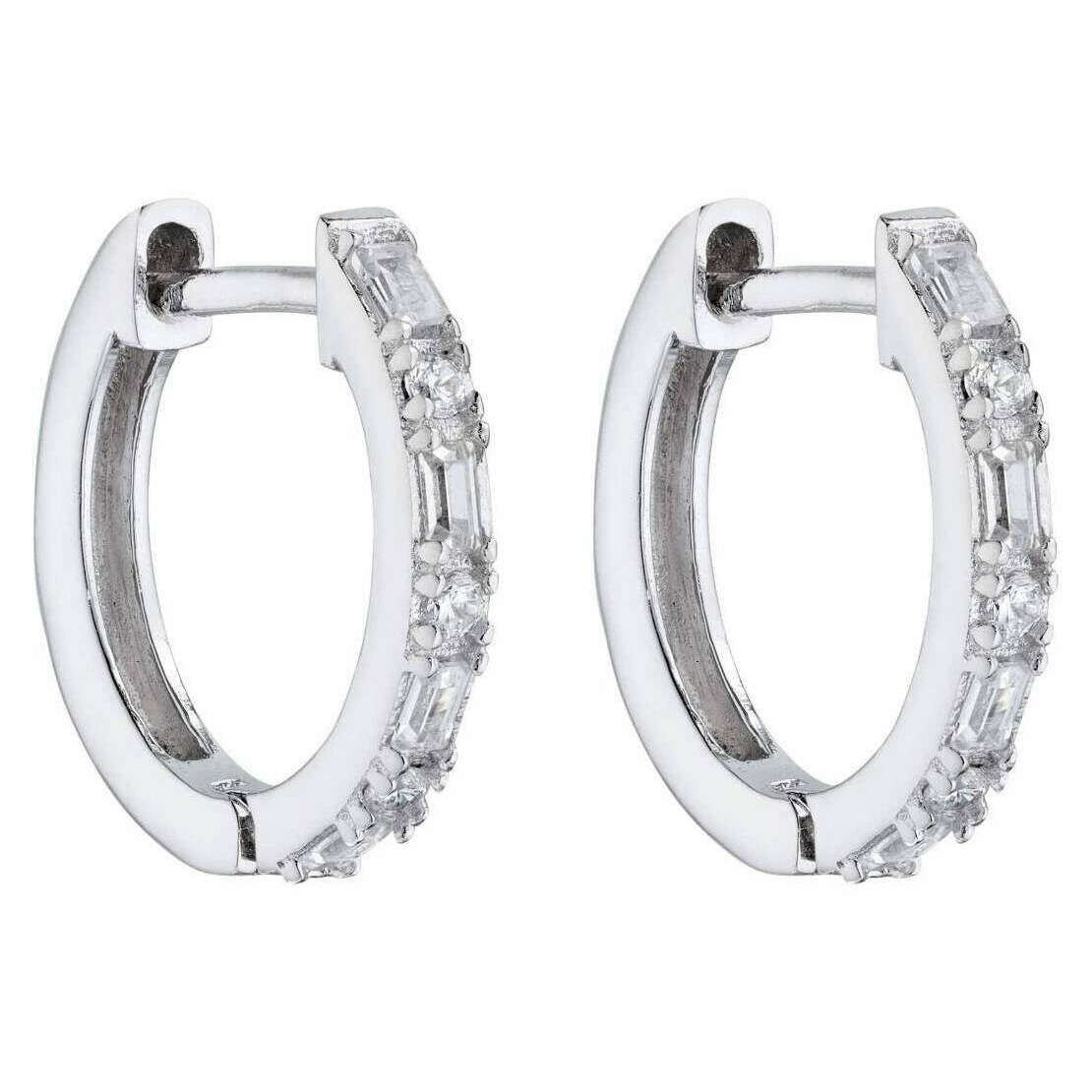 Introducing these women's hinged baguette and round cut gemstone 15mm hoop earrings by Beginnings, they are manufactured from 100% rhodium plated sterling silver and white synthetic gemstone in a silver colour. It measures 1.5cm(height) x 0.2cm(width) x 0.2cm(depth). All the earrings come complete with beginnings presentation box. The Beginnings Hinged Baguette and Round Cut Gemstone 15mm Hoop Earrings - Silver will add a little sparkle to your look from the beautiful white synthetic gemstone stones within these hoops. This simple but elegant design makes sure to match all of your outfits and looks making the perfect everyday day pair, great for stacking or wearing solo. Made from skin safe rhodium plated sterling silver gives this pair its high-quality feel and a luxurious wear.