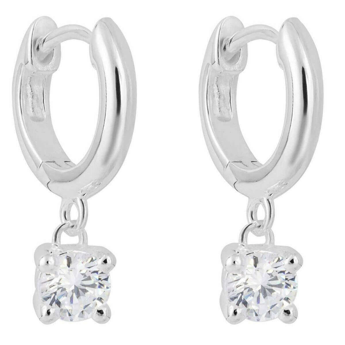 These women's huggie gemstone drop charm hoop earrings have been made from 100% recycled sterling silver and clear synthetic gemstone, featured in a silver colour and are from the brand Beginnings. It measures 1.7cm(height) x 1.1cm(width) x 0.2cm(depth). All the earrings come complete with beginnings packaging. The Beginnings Huggie Gemstone Drop Charm Hoop Earrings - Silver is a perfect everyday pair of earrings to add a sparkle and beauty to your look. This gorgeous pair features cubic zirconia stones hanging at the bottom of the sterling silver hoops giving a beautiful shine when catching the light. Crafted with skin safe recycled sterling silver and clear synthetic cubic zirconia gives this piece its high-quality and luxurious finish.