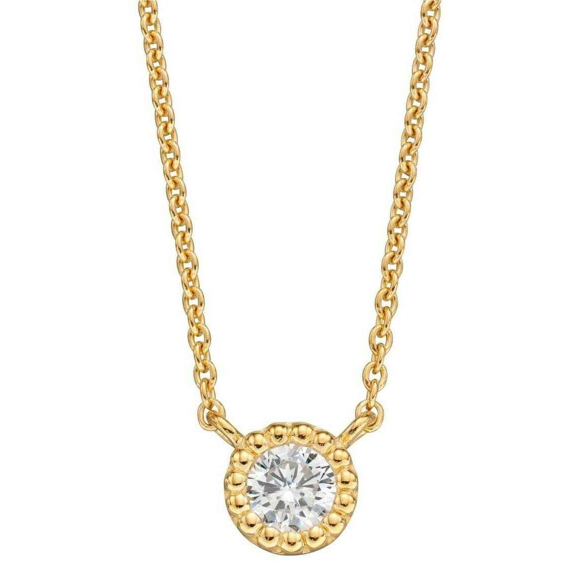 This well made women's millegrain edge gemstone necklace from Beginnings comes in a gold colour and is manufactured from 100% gold plated recycled sterling silver and clear synthetic gemstone. It measures 42cm(length). All the necklaces come complete with beginnings packaging. The Beginnings Millegrain Edge Gemstone Necklace - Gold will become a great addition to your jewellery collection and will be frequently reached for. Featuring a cubic zirconia centre piece gives this necklace its stunning eye-catching shine, perfect for day-to-day wearing or adding a little elegance to your evening attire. Crafted with gold-plated recycled skin safe sterling silver ensures a high-quality and luxurious feel.
