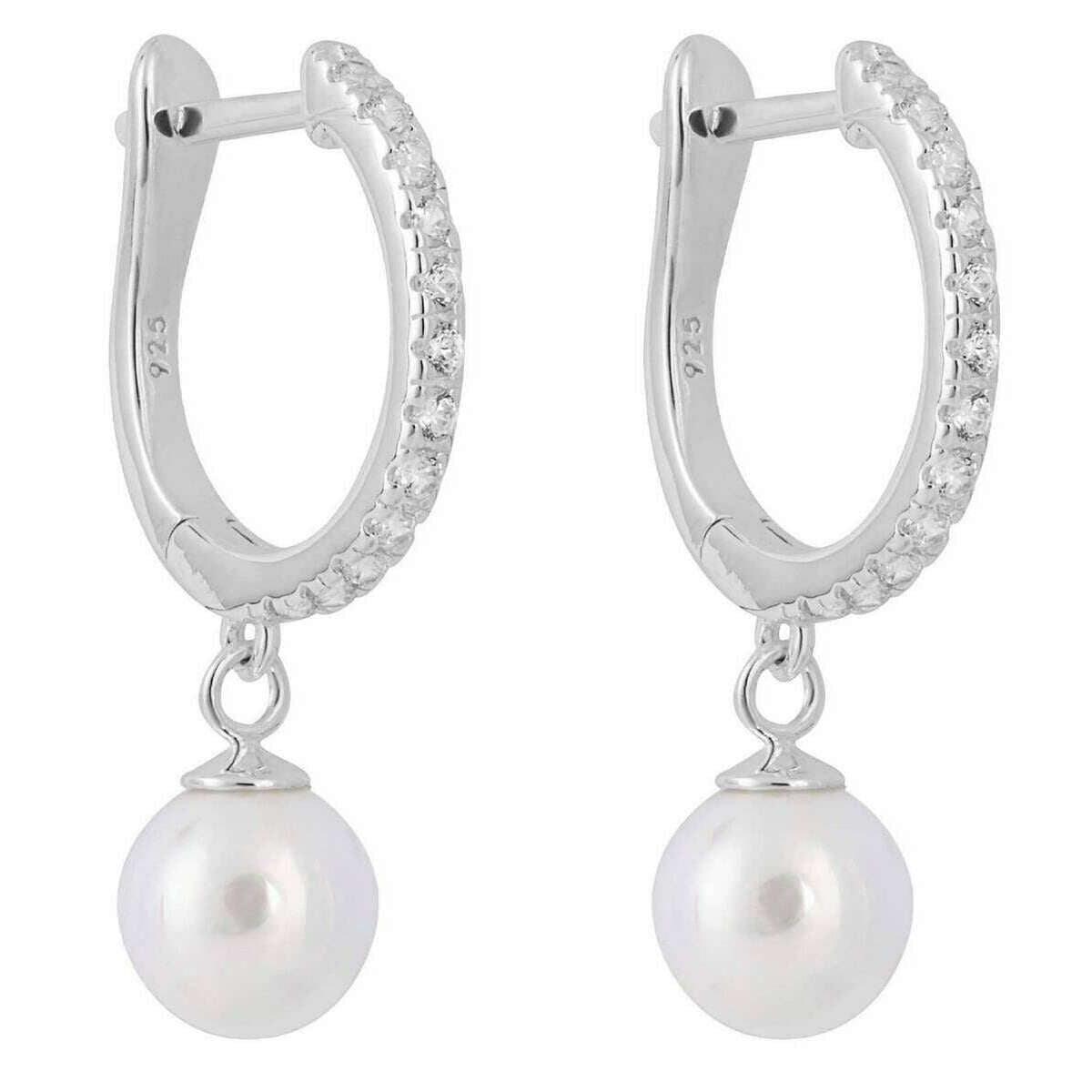Beginnings Pave Pearl Drop Charm Hoop Earrings - Silver/White