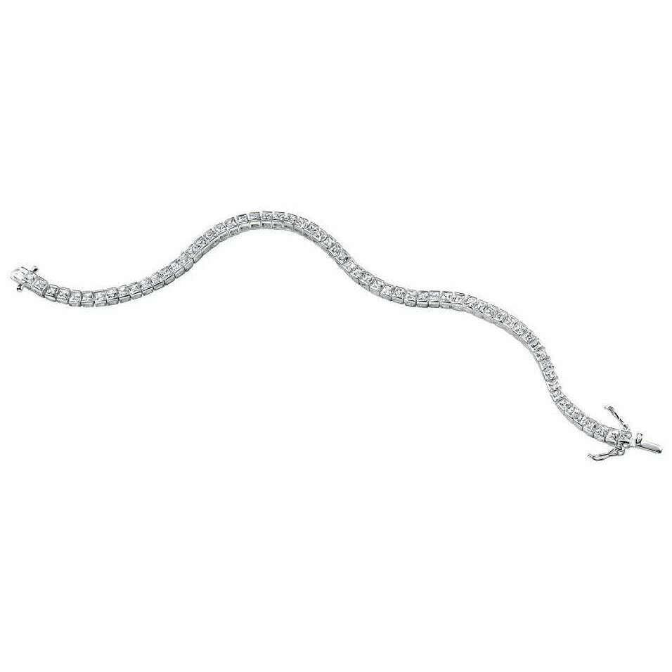 Brought to you by the brand Beginnings, this silver women's square tennis gemstone bracelet is made from 100% recycled sterling silver and clear synthetic gemstone. It measures 19cm(length). All the bracelets come complete with beginnings packaging. The Beginnings Square Tennis Gemstone Bracelet - Silver is the one for you if you are looking to add sophistication and sparkle into your everyday. This simple but beautiful row of clear synthetic cubic zirconia design makes for the prefect layering piece or to wear solo for a sleek look. Crafted from recycled skin safe sterling silver and cubic zirconia gemstones ensures a high-quality and luxurious wear.