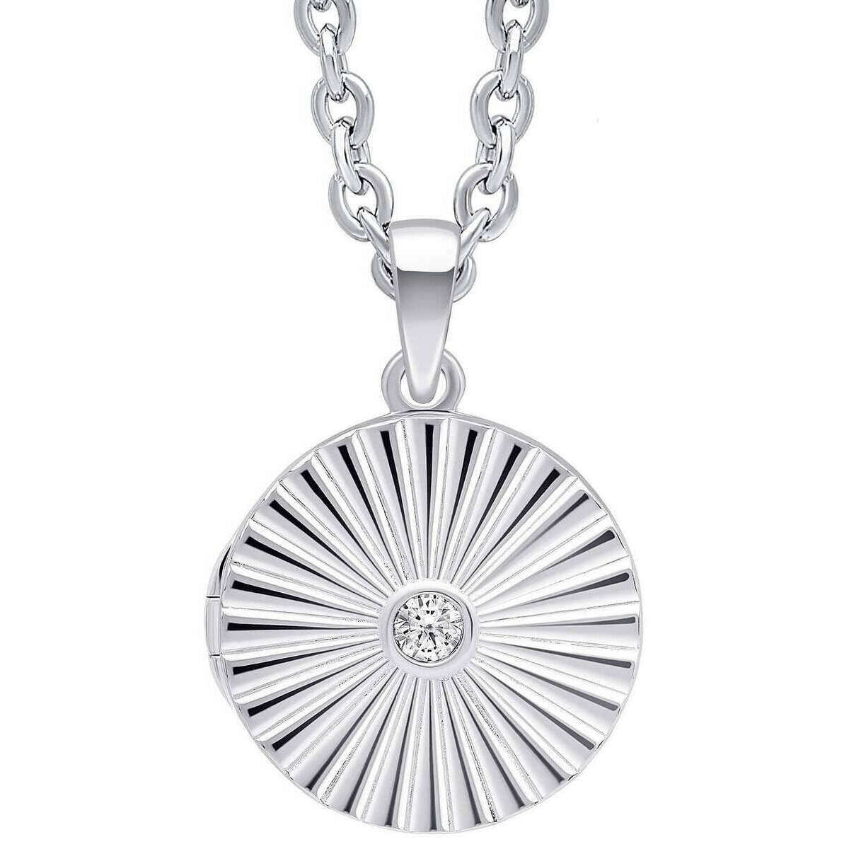 Beginnings Sunburst Round Locket Pendant - Silver