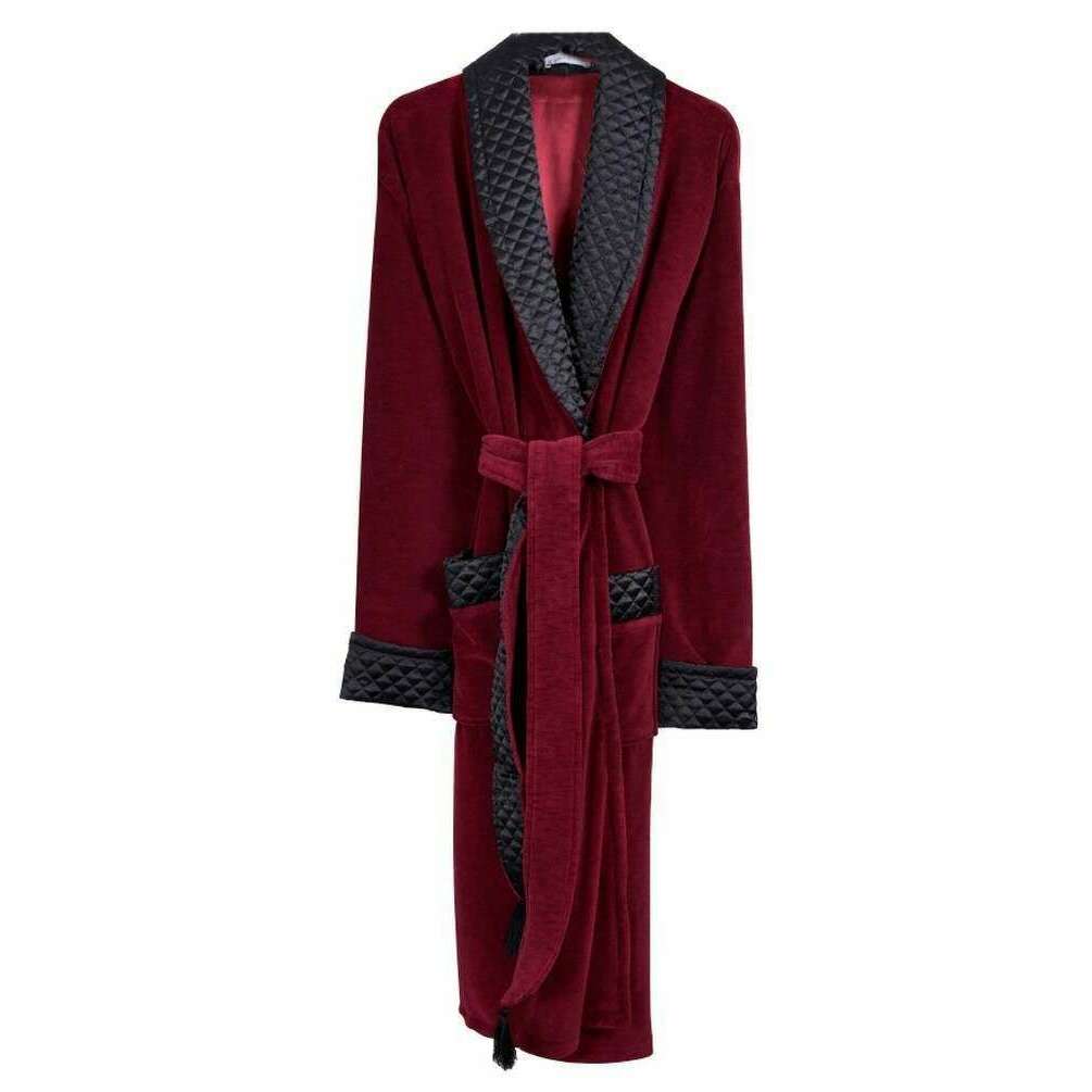 Bown of London Astor Luxury Cotton Long Velvet Smoking Jacket - Burgundy
