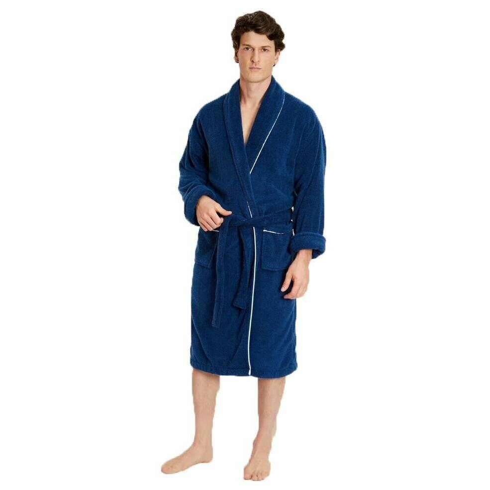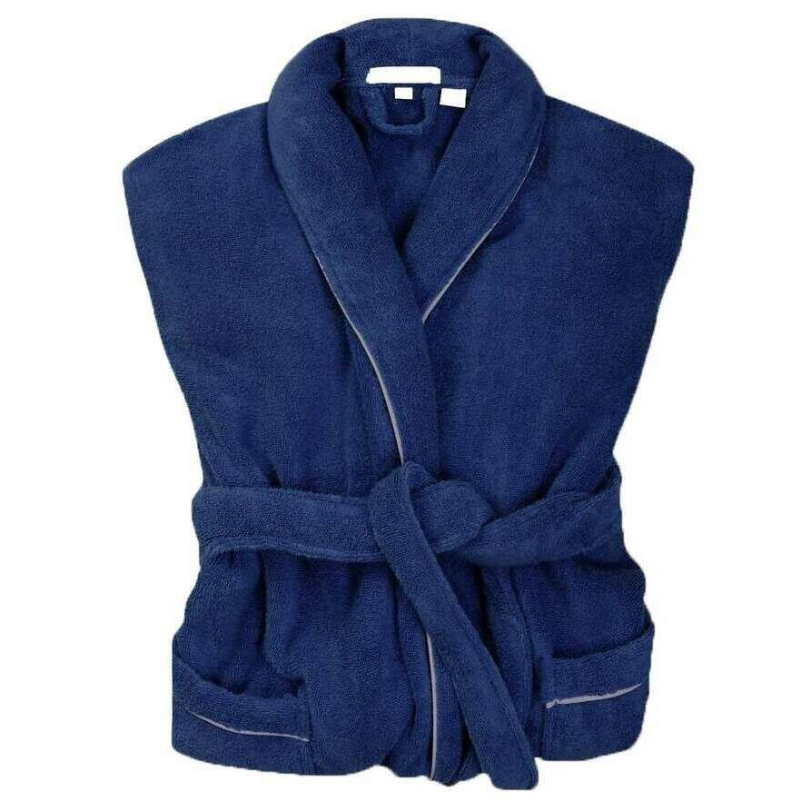 Brought to you by the brand Bown of London, this navy unisex phoenix towelling dressing gown is made from 100% cotton . Also the navy dressing gown is designed in a plain pattern, It is recommended to wash on a 40 degree cotton cycle to keep this dressing gown in good condition. All the dressing gowns come complete with bown of london packaging. The Bown of London Phoenix Towelling Dressing Gown - Navy offers a soft, absorbent feel that wraps you in comfort with its plush, lightweight feel while ensuring superior absorbency perfect for post-bath relaxation or lounging in style. The rich Navy shade is beautifully accented with refined piping for a sophisticated look. Designed with a classic shawl collar, lined foldback cuffs and spacious pockets, this robe combines style with comfort. Perfect for relaxing at home, the Phoenix bathrobe is a luxurious addition to any wardrobe.
