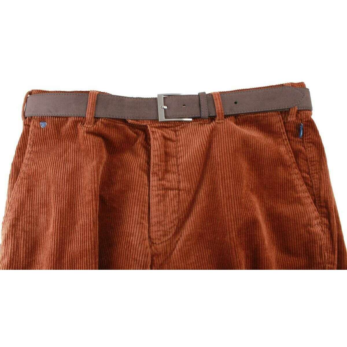 Designer BRUHL have brought you these men's 99% cotton and 1% elastane trousers using rust brown tones. Also the rust brown trousers are designed in a plain pattern, It is recommended to wash at 40 degrees to keep these trousers in good condition. All the trousers come complete with bruhl tags. The BRUHL Parma B Genua Cord Trousers - Rust Brown have been excellently crafted from luxury Giza cotton fabric which is high quality cotton known for its softness, strength and long fibres. The corduroy design has a soft touch finish which is sure to stand above the rest. Featuring a stretch waistband and allowing you full freedom of movement, this quality pair of cords will provide you with the utmost comfort throughout the day. The 2 quarter pockets, 2 buttoned-through panel pockets and 8 belt loops also make this pair perfect for everyday wear. Comes complete with a belt to finish off your look.