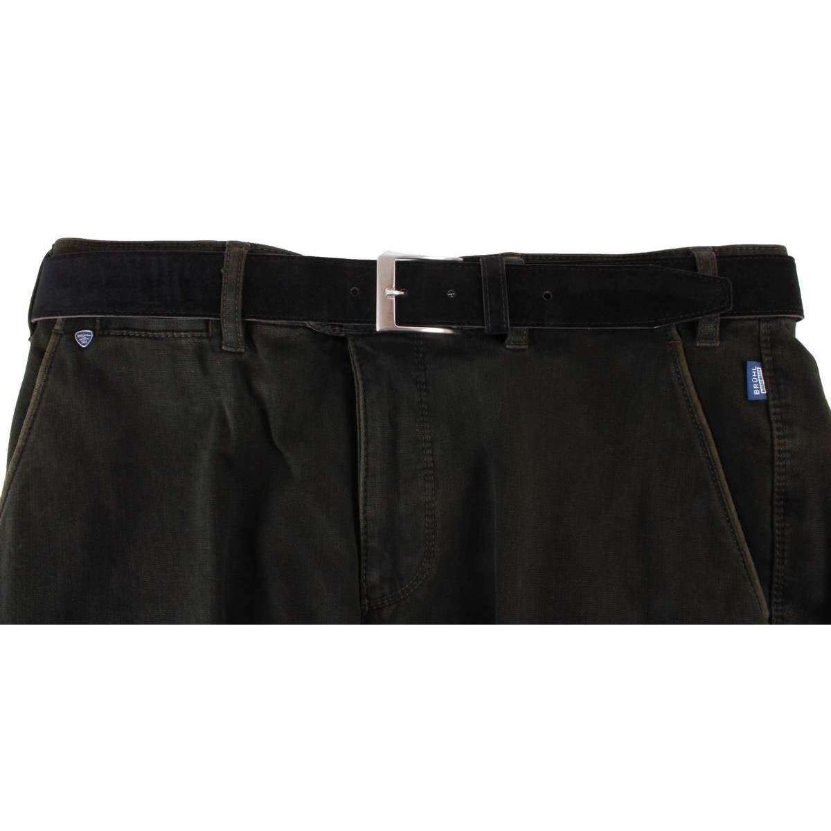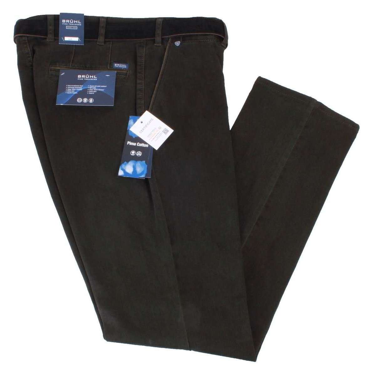 These men's venice b turn autumn weight chinos by the brand BRUHL are made from 97% cotton and 3% elastane and are showcased in khaki. Also the khaki trousers are designed in a plain pattern, It is recommended to wash at 40 degrees to keep these trousers in good condition. All the trousers come complete with bruhl tags. The BRUHL Venice B Turn Autumn Weight Chinos - Khaki are a truly stylish pair of chinos perfect for the colder months as their 3-D Pima microstructure features a cosy touch and cashmere finish, ideal for keeping you comfortable and warm. They feature a plain front with stretch waistband 2 side quarter pockets, 2 button through panel pockets with stitching, turned fabric with coloured back side and 8 belt loops; they are sure to be a favourite in any man’s collection. Comes complete with a belt for a fashionable look.