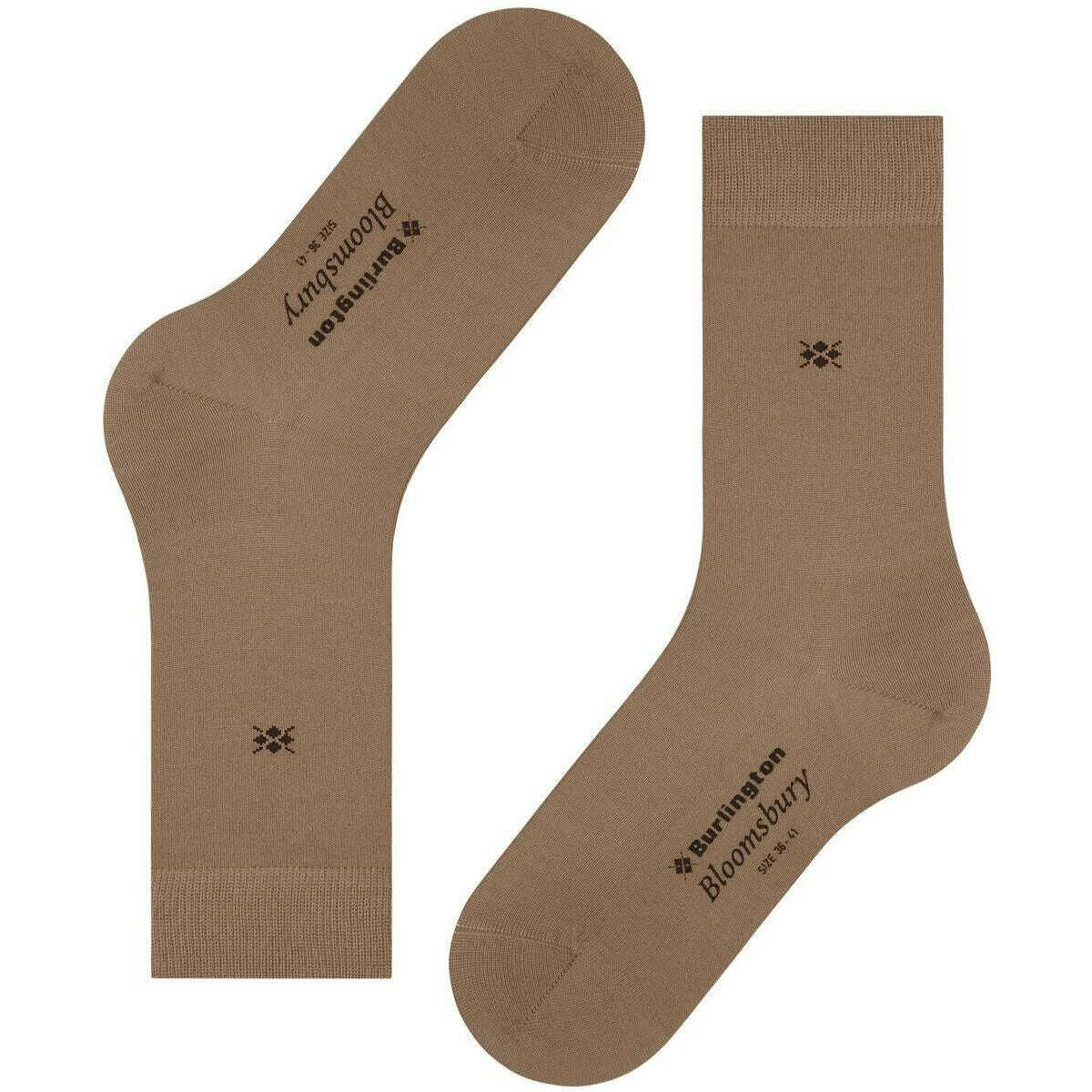 These women's bloomsbury socks by the brand Burlington are made from 71% virgin wool, 16% cotton, 12% polyamide and 1% elastane and are showcased in brown. Also the camel brown socks are designed in a plain pattern, It is recommended to wash at 30 degrees to keep these socks in good condition. All the socks come complete with burlington sock tags. The Burlington Bloomsbury Socks - Camel Brown provide fabulous comfort for your feet, with the soft cotton interior and Virgin wool on the outside. These mid-length socks have a gentle cuff that sits comfortably, providing a secure fit that doesn’t slip or dig into the skin. The fabric’s stretchiness allows the socks to adapt to different foot shapes, making them both comfortable and stylish. The embroidered Burlington logo and the sole stamp add refined class to these socks making them the ultimate accessory to your everyday wardrobe.