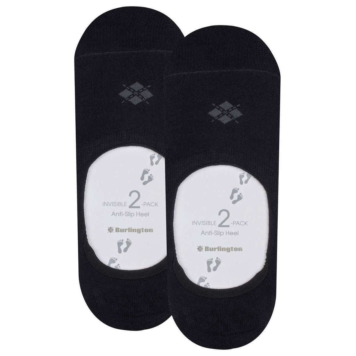 These men's everyday 2-pack no show socks by the brand Burlington are made from 80% cotton, 17% polyamide and 3% elastane and are showcased in black. Also the black socks are designed in a plain pattern, It is recommended to wash at 40 degrees to keep these socks in good condition. All the socks come complete with burlington sock tags. The Burlington Everyday 2-Pack No Show Socks - Black are the perfect socks, because quality matters! While invisible in the shoe, these socks stay in place with an optimal grip due to the silicone on the heel. The combed cotton ensures your feet are comfortable all day! Boasting strong plain colours with the Burlington logo on the sole, these socks guarantee wearability while still making its fashion statement.