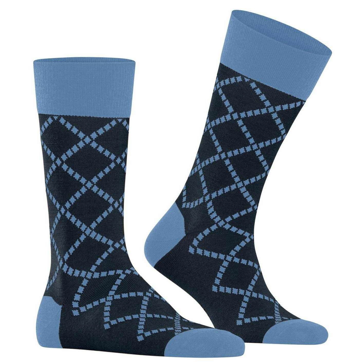 These men's ferry road socks by the brand Burlington are made from 68% virgin wool, 31% polyamide and 1% elastane and are showcased in blue. Also the marine blue socks are designed in a diamonds pattern, It is recommended to wash at 30 degrees to keep these socks in good condition. All the socks come complete with burlington sock tags. The Burlington Ferry Road Socks - Marine Blue are a sophisticated blend of classic style, premium quality, and superior comfort. Designed with discerning gentlemen in mind, these socks are a go-to choice for a professional and elegant look. The tasteful diamond design adds a touch of elegance to these sustainable socks. Accentuated with the Burlington clip at the cuff, you are guaranteed a quality that only Burlington can give.