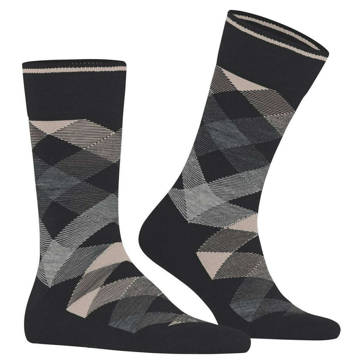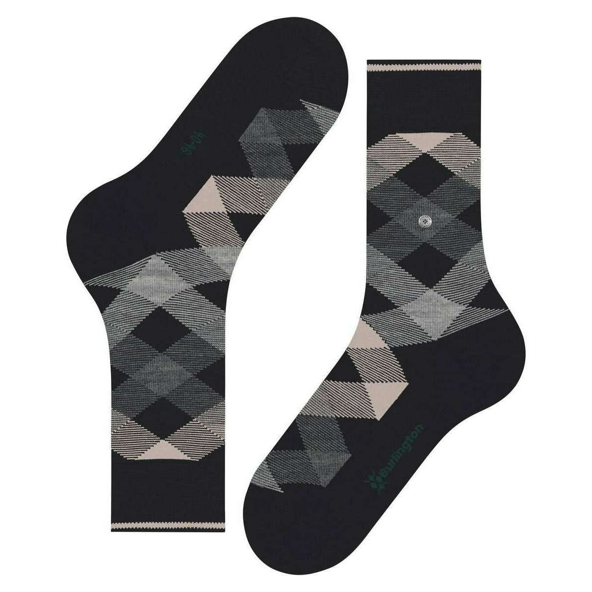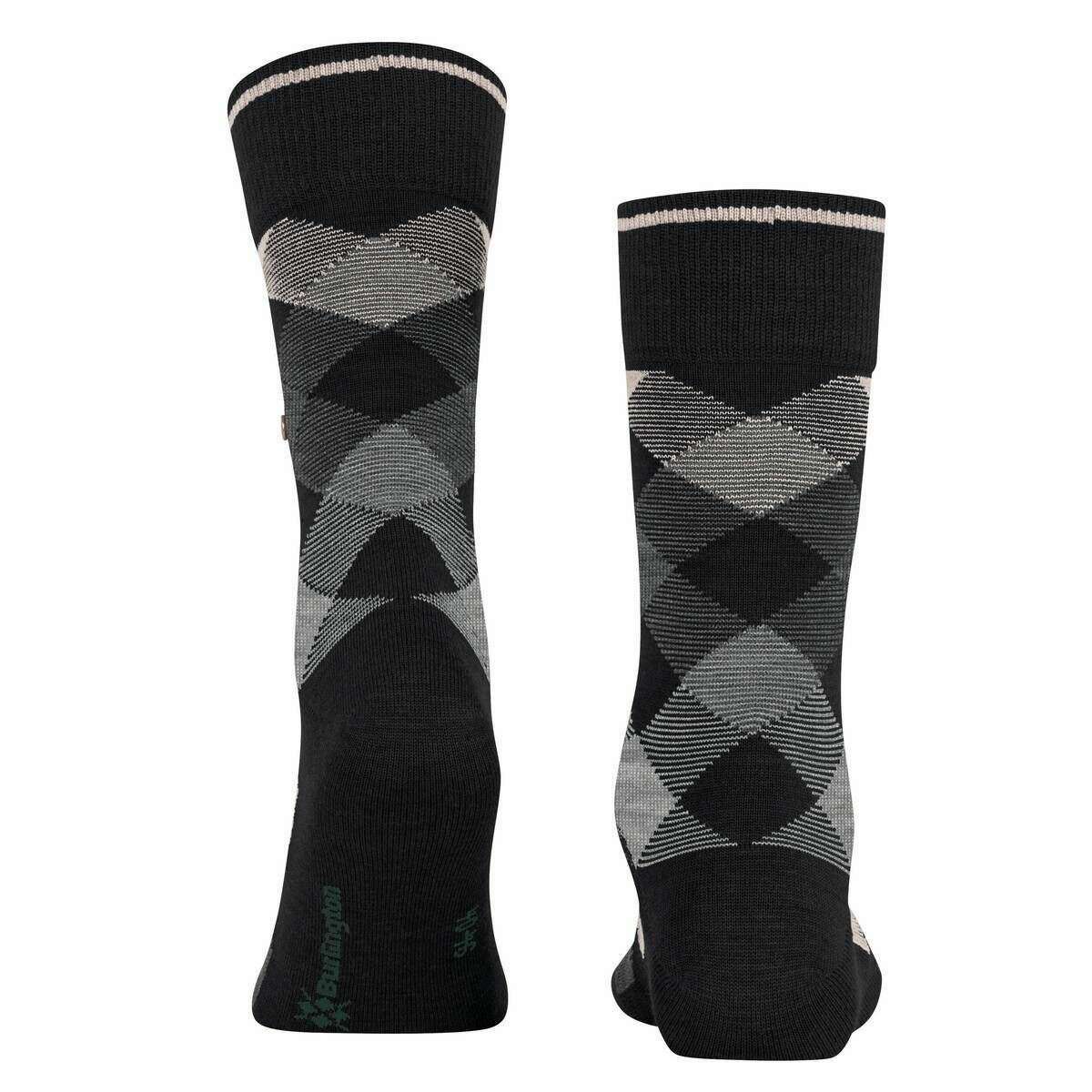 Brought to you by the brand Burlington, these black men's newcastle socks are made from 71% virgin wool and 29% polyamide. Also the black socks are designed in a diamonds pattern, It is recommended to wash at 30 degrees to keep these socks in good condition. All the socks come complete with burlington sock tags. The Burlington Newcastle Socks - Black are made from a luxurious warming, high quality new wool. These socks boast a modern, urban sophisticated look, with the diamond pattern and accentuated stripes on the cuff. Perfect for everyday wear or business occasions, these socks are comfortable and offer a snug fit. The socks are finished by the instantly recognizable Burlington clip, seal of authenticity and quality. These socks provide unmatched style and comfort and are a must-have in any wardrobe.