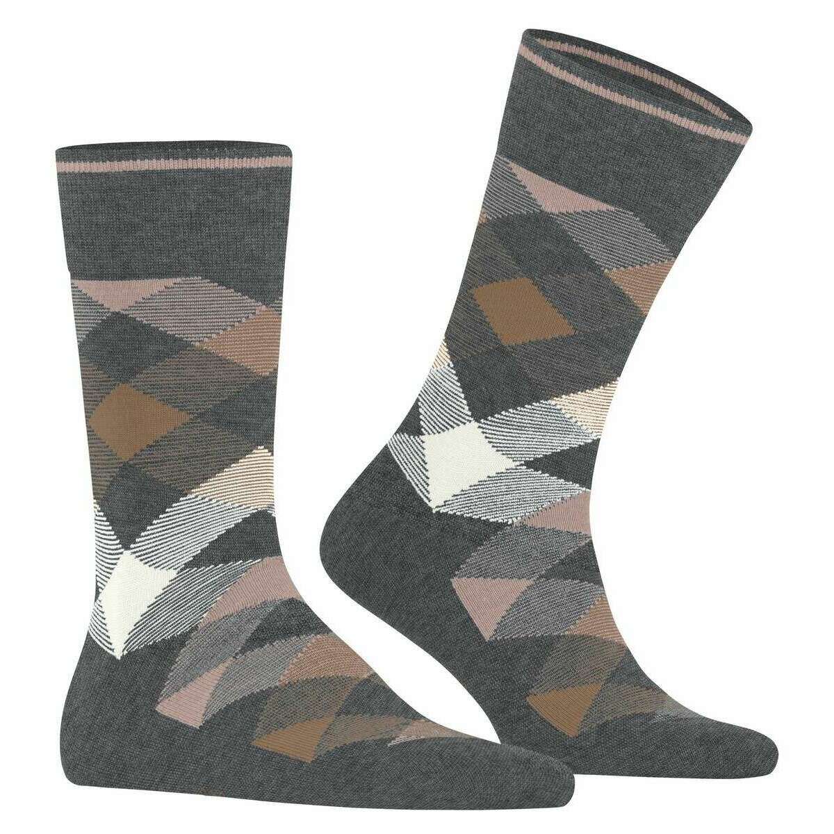 These men's newcastle socks have been made from 71% virgin wool and 29% polyamide, featured in a grey colour and are from the brand Burlington. Also the dark grey socks are designed in a diamonds pattern, It is recommended to wash at 30 degrees to keep these socks in good condition. All the socks come complete with burlington sock tags. The Burlington Newcastle Socks - Dark Grey are made from a luxurious warming, high quality new wool. These socks boast a modern, urban sophisticated look, with the diamond pattern and accentuated stripes on the cuff. Perfect for everyday wear or business occasions, these socks are comfortable and offer a snug fit. The socks are finished by the instantly recognizable Burlington clip, seal of authenticity and quality. These socks provide unmatched style and comfort and are a must-have in any wardrobe.