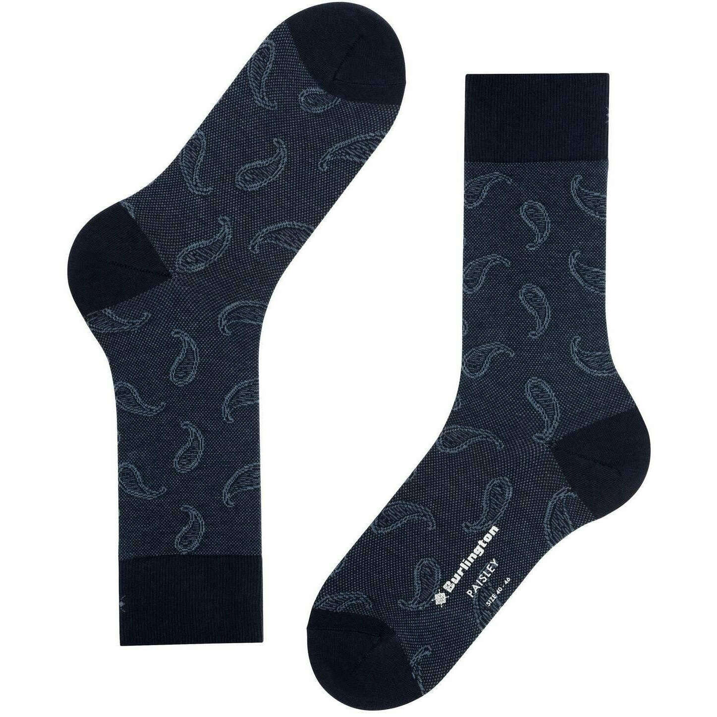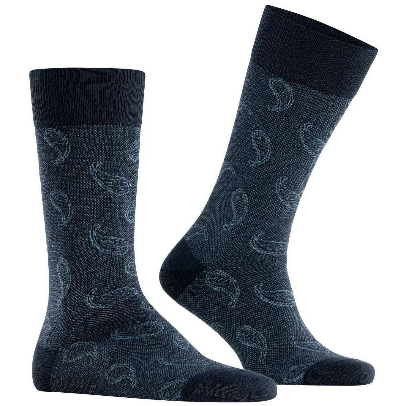Manufactured from 78% organic cotton, 21% polyamide and 1% elastane are these marine blue men's paisley socks by the designer Burlington. Also the marine blue socks are designed in a paisley pattern, It is recommended to wash at 40 degrees to keep these socks in good condition. All the socks come complete with burlington sock tags. The Burlington Paisley Socks - Marine Blue are more than just a fashion accessory, they're a statement of style, fun, and superior craftsmanship. Crafted from a blend of combed cotton, polyester, and elastane, these socks provide a breathable, comfortable fit with a hint of stretch. The high-quality materials ensure durability while maintaining a cozy, skin-friendly texture. The knitted-in Burlington logo and trendy paisley pattern adds a playful touch to any outfit and is for those seeking a fun twist in their everyday attire.