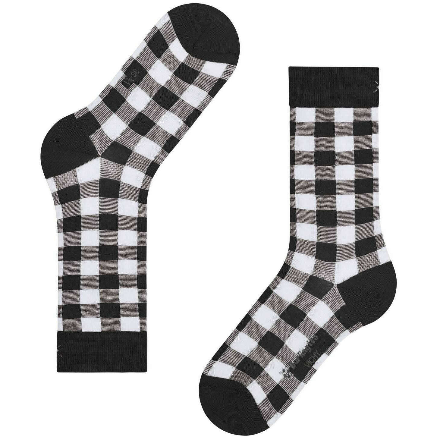 Manufactured from 62% organic cotton, 35% polyamide and 3% elastane are these black women's vichy socks by the designer Burlington. Also the black socks are designed in a checked pattern, It is recommended to wash at 40 degrees to keep these socks in good condition. All the socks come complete with burlington socks tags. The Burlington Vichy Socks - Black are a stylish, unique addition to any wardrobe, designed to add a touch of flair while ensuring comfort and durability. These socks combine the classic check pattern and the striking, contrasting diamond pattern at the edge to enhance any outfit. The high-quality combed cotton keeps these socks breathable, while the stretch fabric ensures they fit comfortably without slipping.