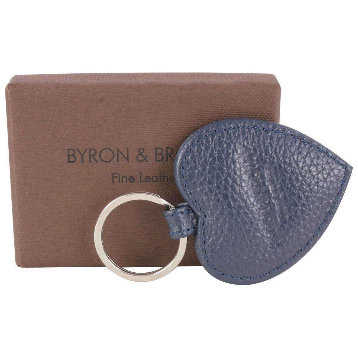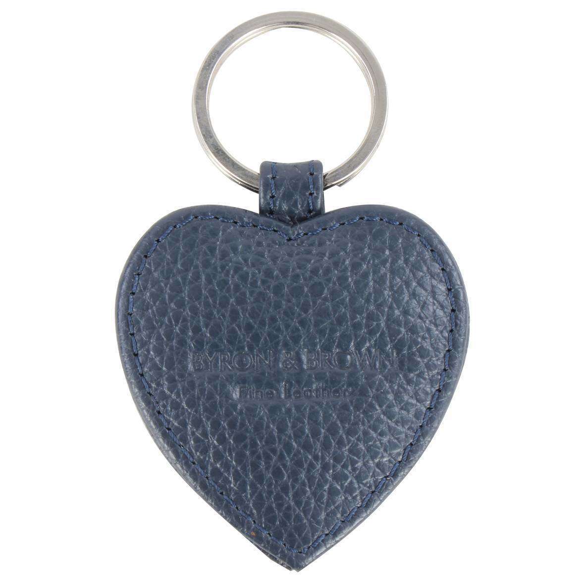 Byron and Brown Roma Leather Small Heart Key Ring - Navy