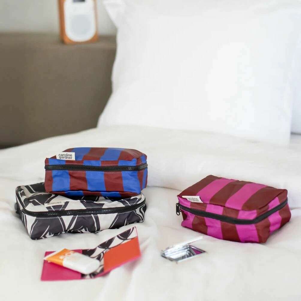 Introducing this women's mono linked hearts and stripe set of 3 small packing cubes by Caroline Gardner, it is manufactured from 100% polyester in a black/blue/pink colour. All the bags come complete with caroline gardner tags. The Caroline Gardner Mono Linked Hearts and Stripe Set of 3 Small Packing Cubes - Black/Blue/Pink allows every traveller to stay organised in style. Designed in the brand s new mono linked hearts and stripe prints, each cube adds a playful yet practical touch to any suitcase.