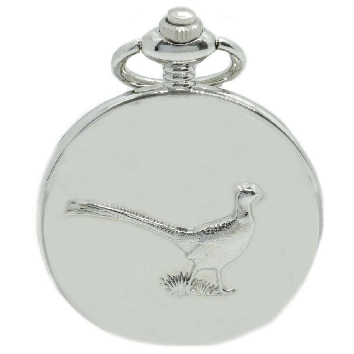 David Aster Pheasant Embossed Quartz Full Hunter Pocket Watch - Silver/White