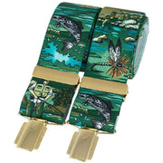 This David Van Hagen classic brace has put a contemporary twist on vintage chic. Luxurious and stylish, these sophisticated braces are an essential. Featuring fully elasticated, adjustable straps in a green angling print with gold metal belt clips, they are well-fitting as well as fashionable. Well-designed, this David Van Hagen brace is guaranteed to make you stand out from the crowd, whilst adding pattern to your choice of outfit.