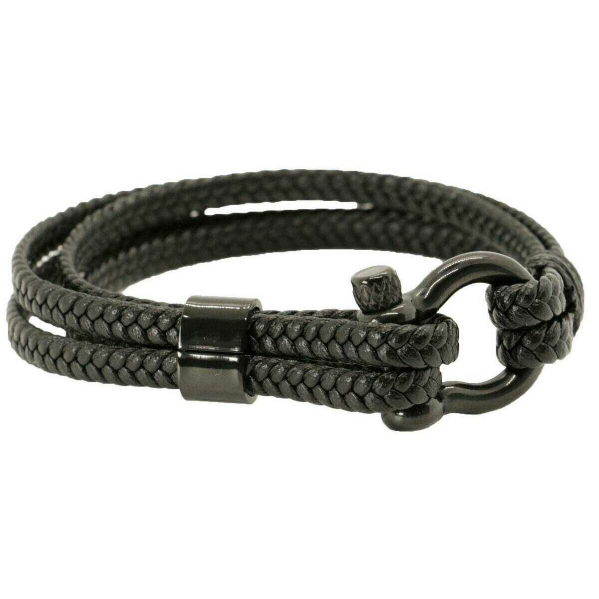 Designer David Van Hagen has brought you this men's 100% leather bracelet using black tones. It measures 21.5cm(length). All the bracelets come complete in a pouch. The David Van Hagen Double Plaited Shackle Clasp Bracelet - Black gives off an amazing effect with its bold design. Guaranteed not to disappoint with its lightweight feel and stylish look, this piece is certain to go with any attire for any occasion. Secured using a stunning clasp it is easy to put on and take off.