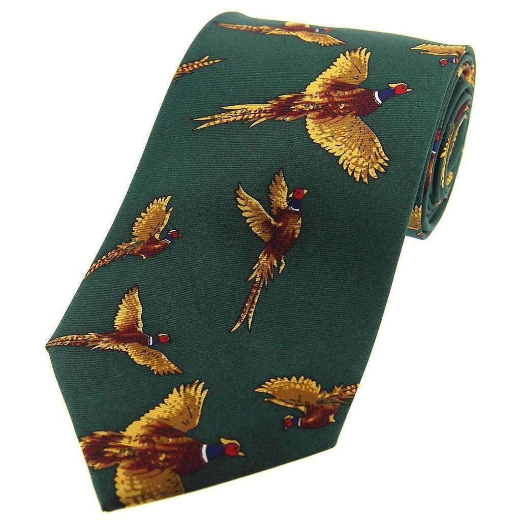 David Van Hagen Flying Pheasants Country Silk Tie - Country Green