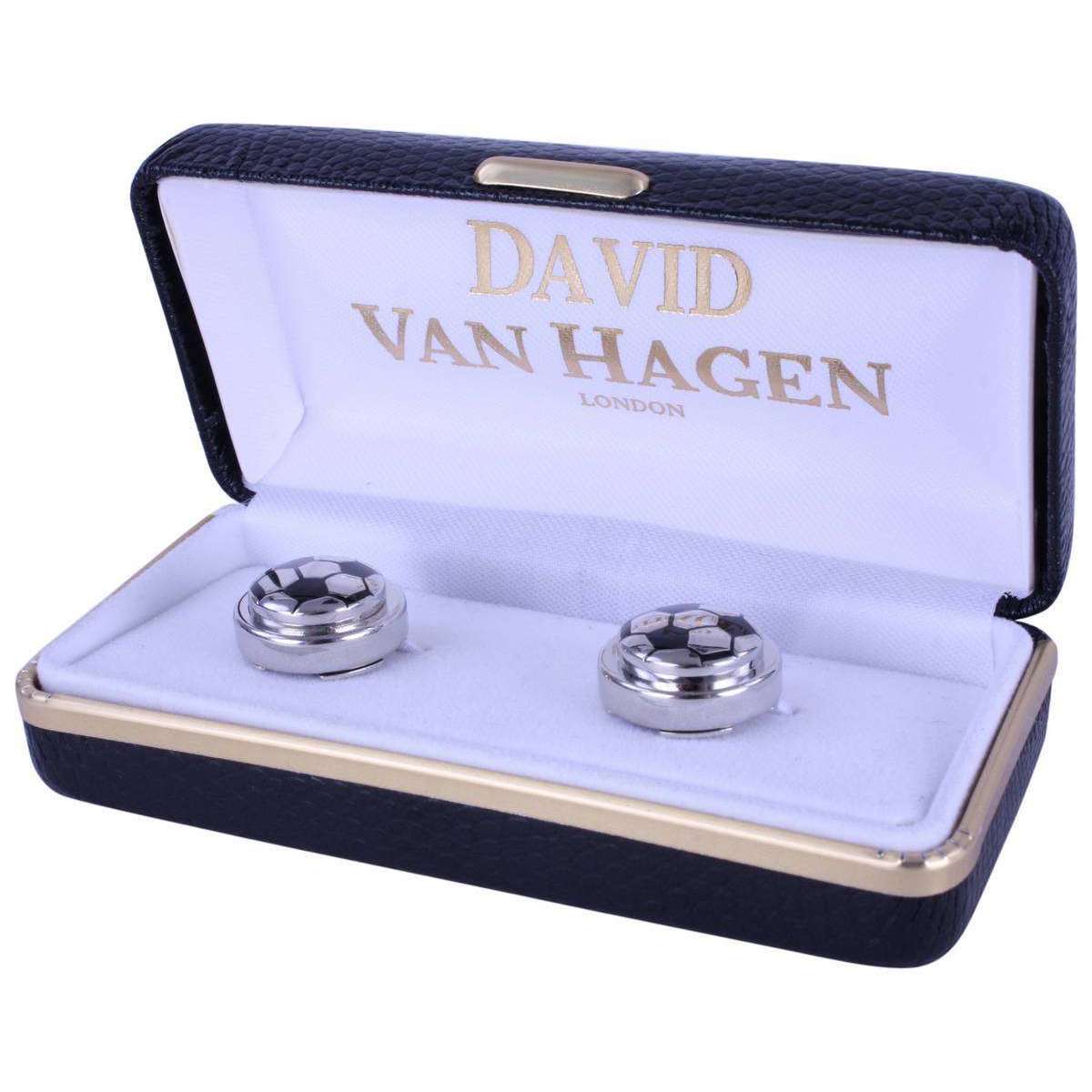 These football button covers by David Van Hagen are an excellent alternative to traditional cufflinks. The ultimate accessory for a football or soccer fan, this piece is guaranteed to impress. At a diameter of 1.7cm, this easy to use item slides onto the buttons of a cuffed shirt and clips on so they stay safely attached. This high quality David Van Hagen piece would make a wonderful gift that would certainly be appreciated.