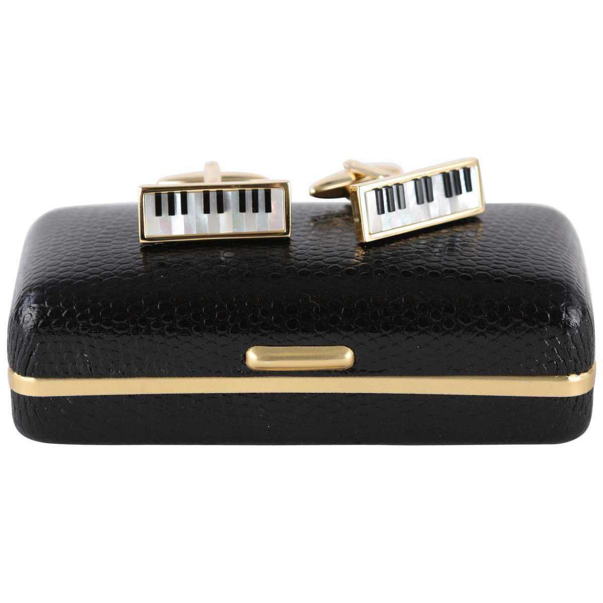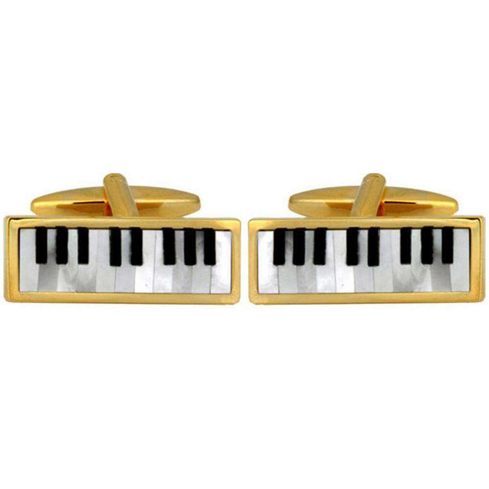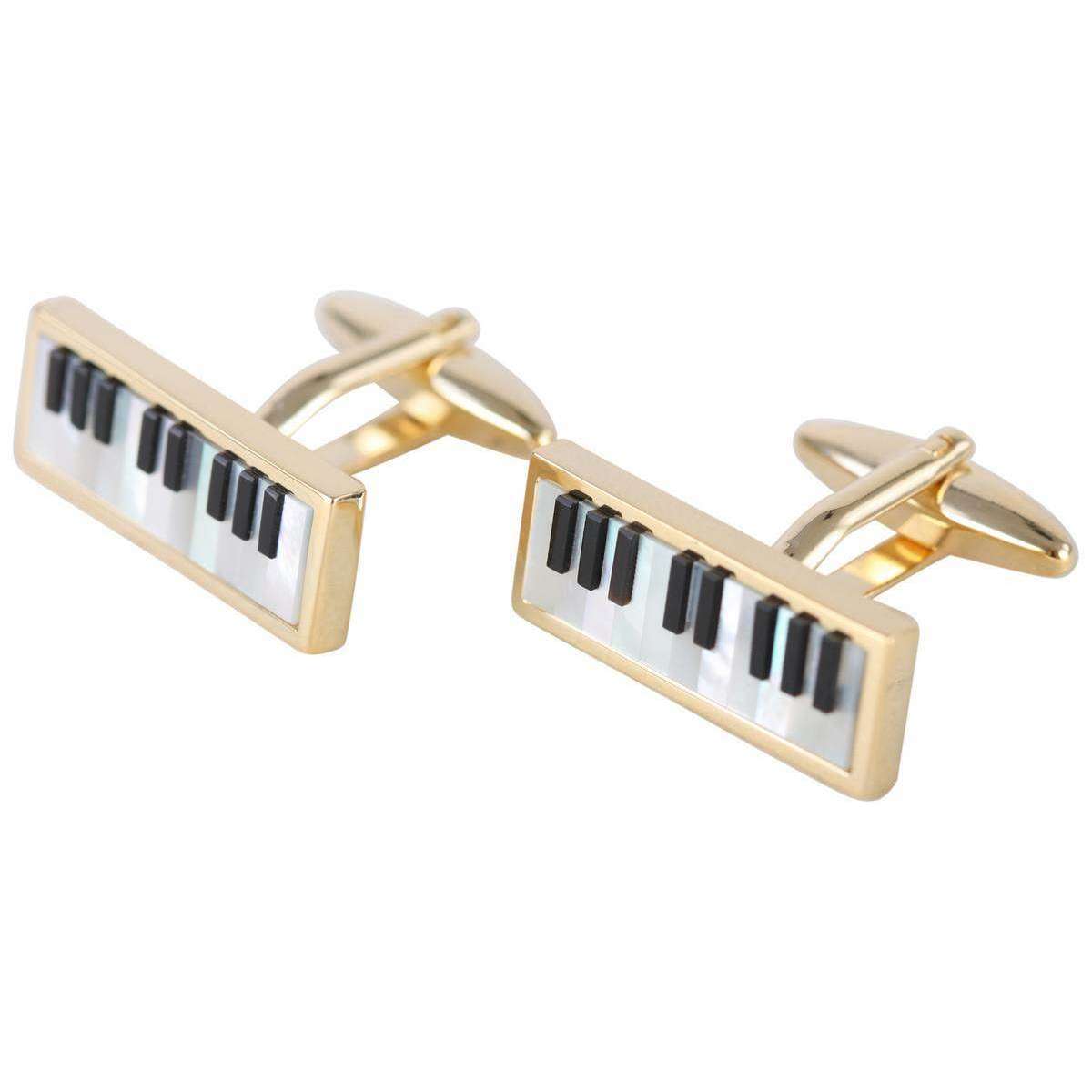 David Van Hagen Gold Plated Mother of Pearl and Onyx Keyboard Cufflinks - White/Black/Gold