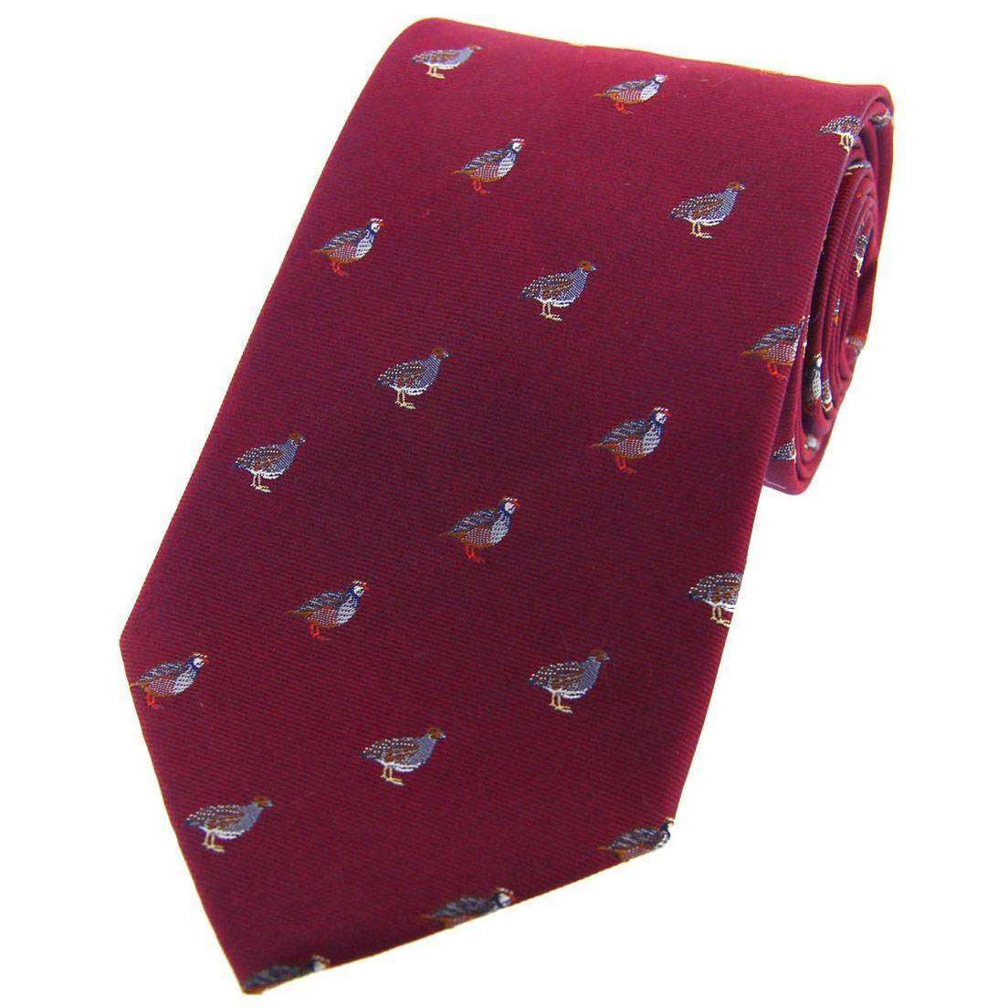 David Van Hagen Grouse and Partridge Woven Country Silk Tie - Wine