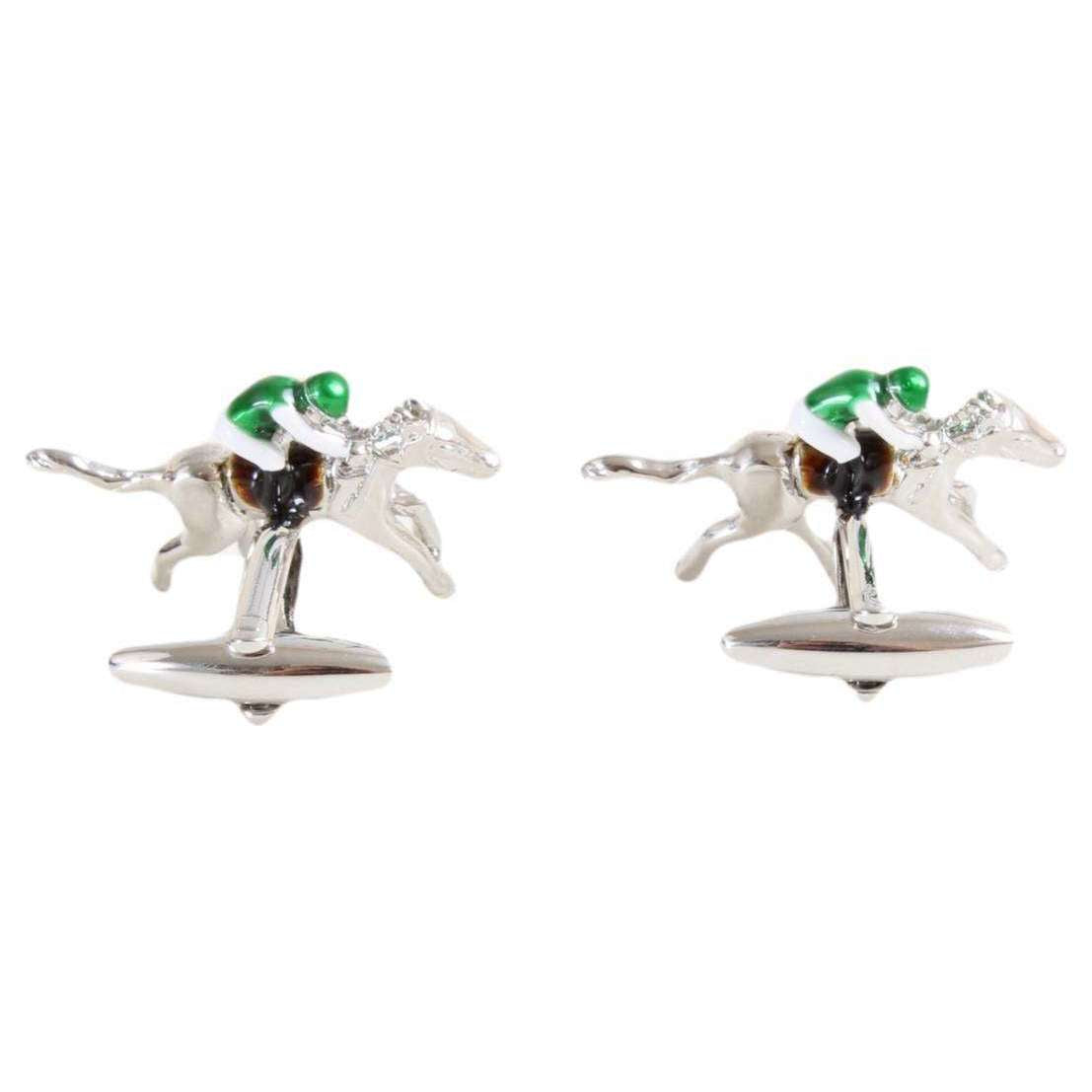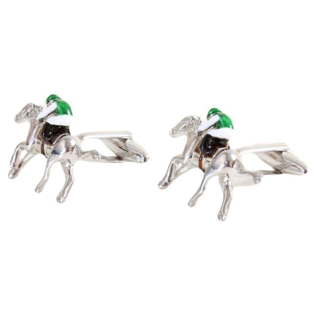 David Van Hagen Horse Racing Cufflinks - Silver/Green