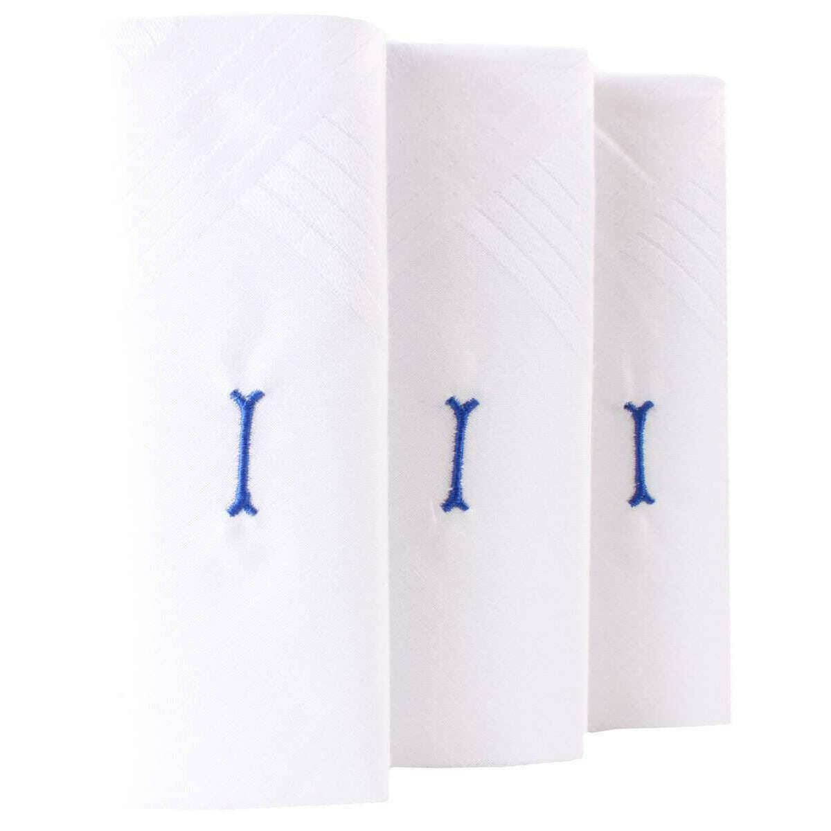 David Van Hagen I Initial 3 Pack Handkerchief - White/Blue