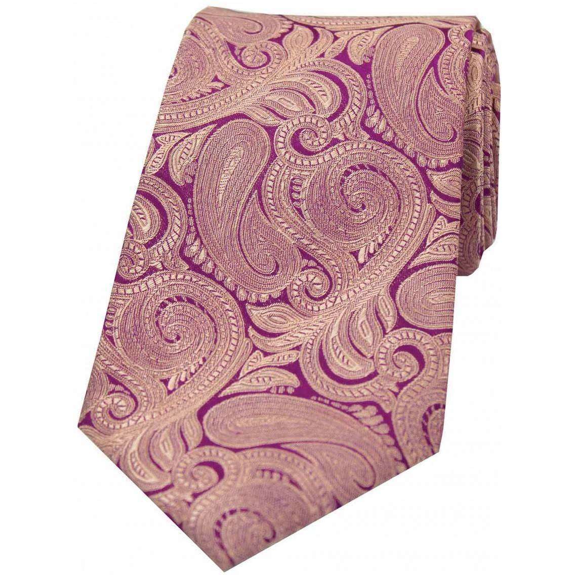 David Van Hagen Luxury Paisley Silk Tie - Purple/Fuchsia