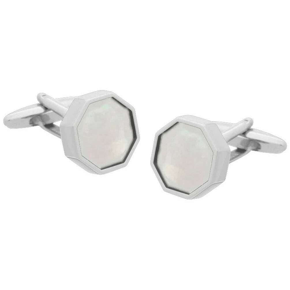 • Semi-Precious Mother of Pearl Stone , Sunken Stone , Octagonal Shape , Polished Metal Case , Standard Cufflink Bascule