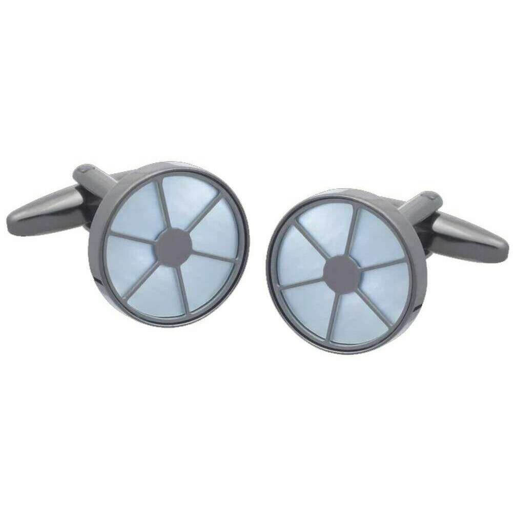 Perfect for men are these David Van Hagen blue/grey mother of pearl segment cufflinks, they are also made from base metal. All the cufflinks come complete with david van hagen packaging. The David Van Hagen Mother Of Pearl Segment Cufflinks - Blue/Grey are the perfect simple but classy cufflinks for everyday wear that will be sure to catch the eyes of others. The beautiful semi-precious mother of pearl stone within a silver segmented case adds depth and a touch of sophisticated style.