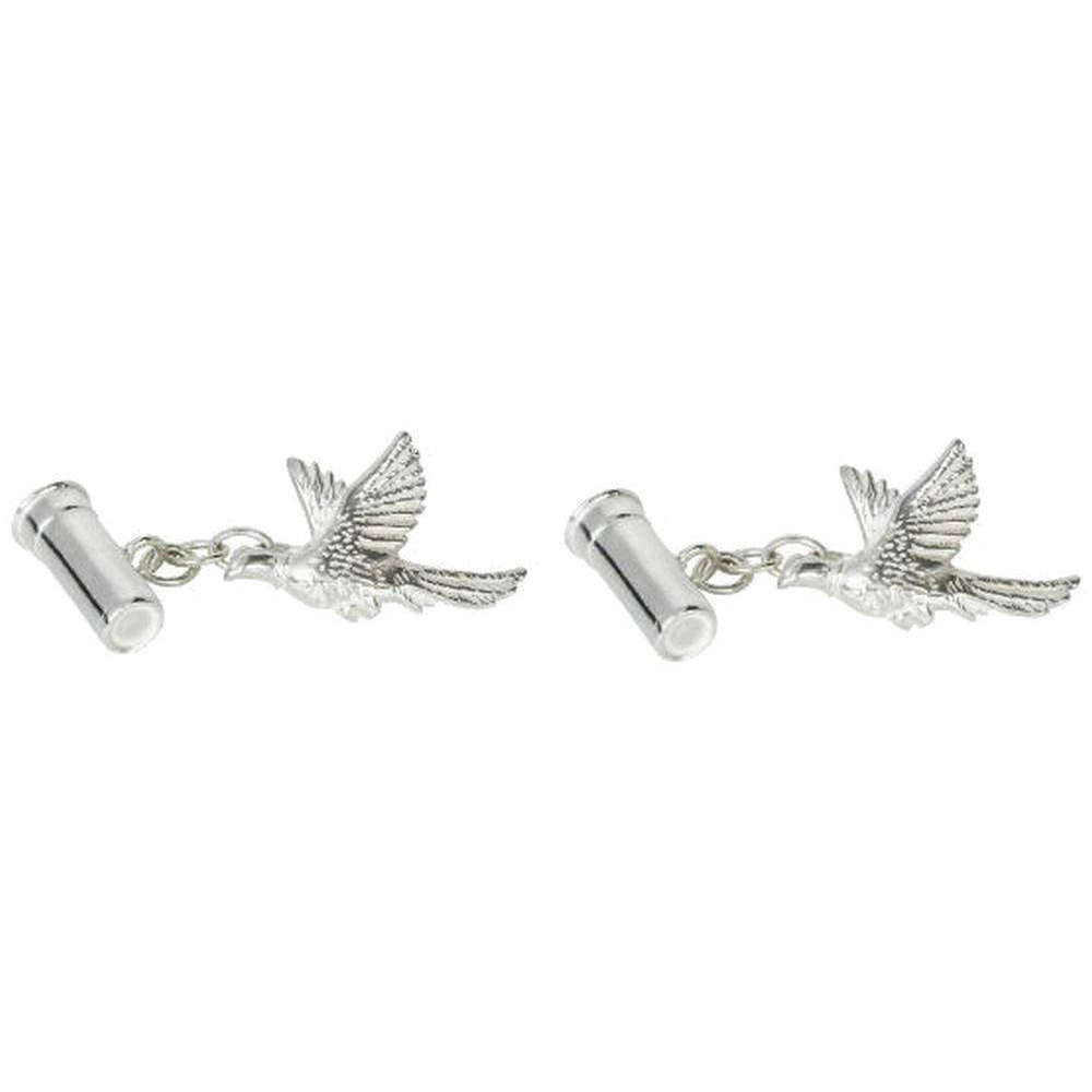 David Van Hagen Sterling Silver Pheasant and Gun Cartridge Cufflinks - Silver