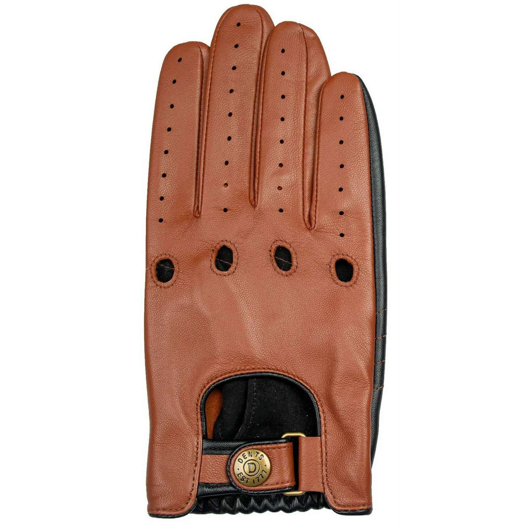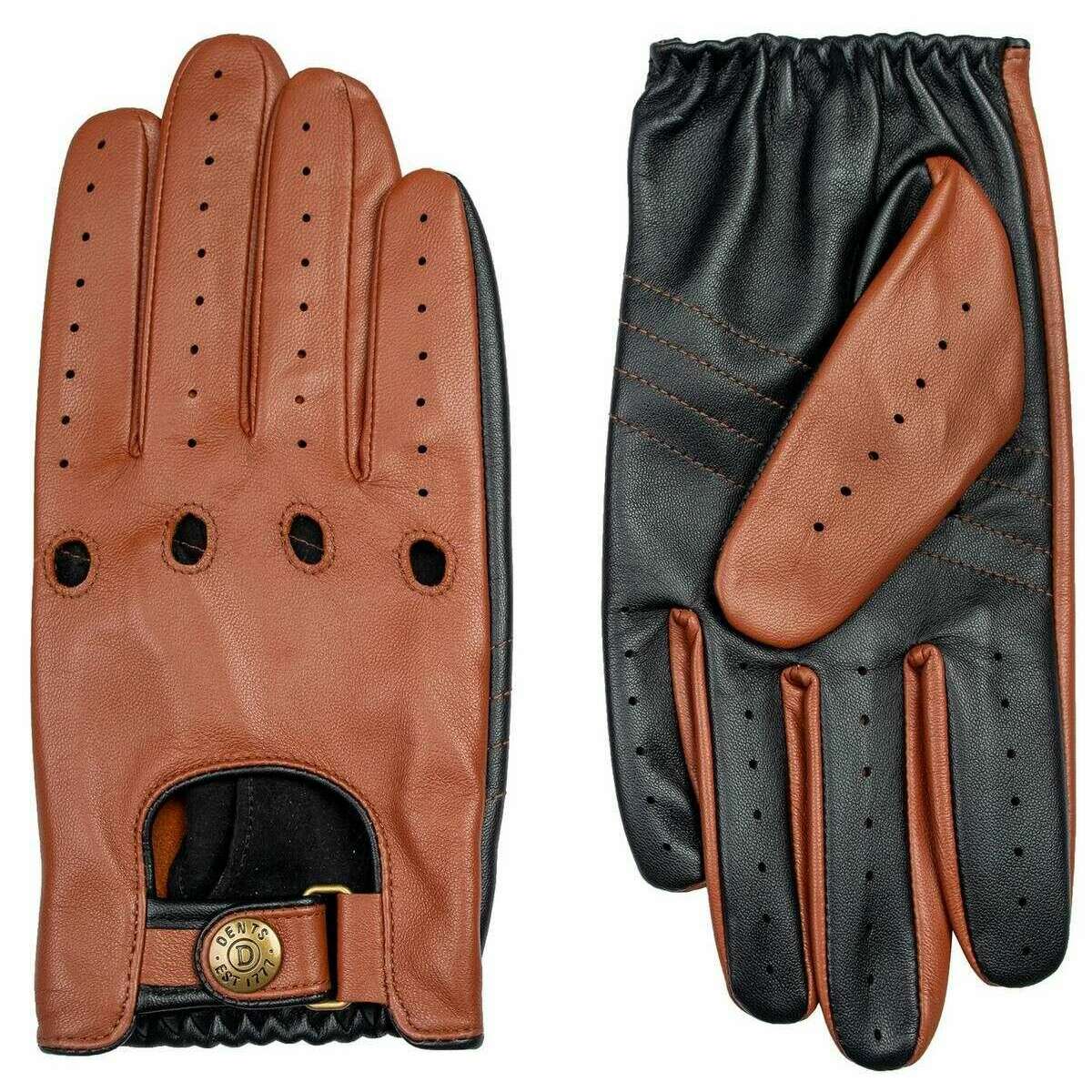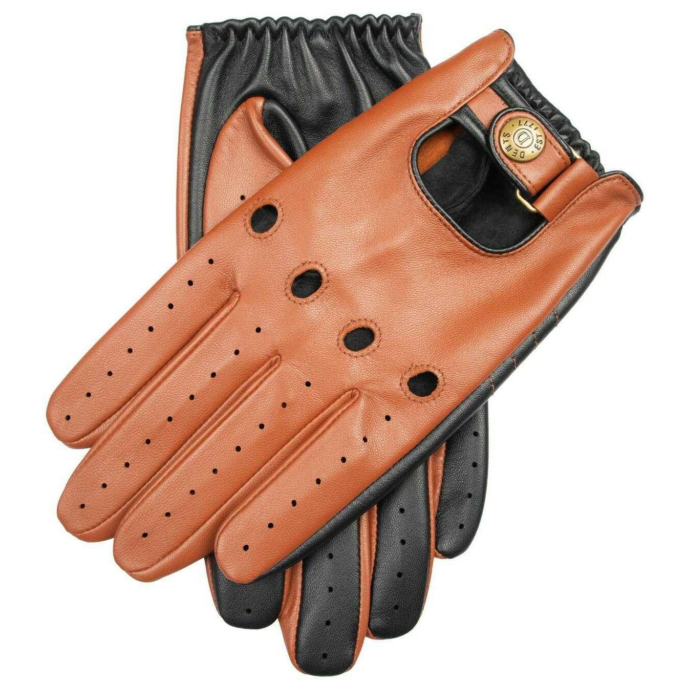 Dents Aintree Two-Colour Leather Driving Gloves - Cognac Brown/Black