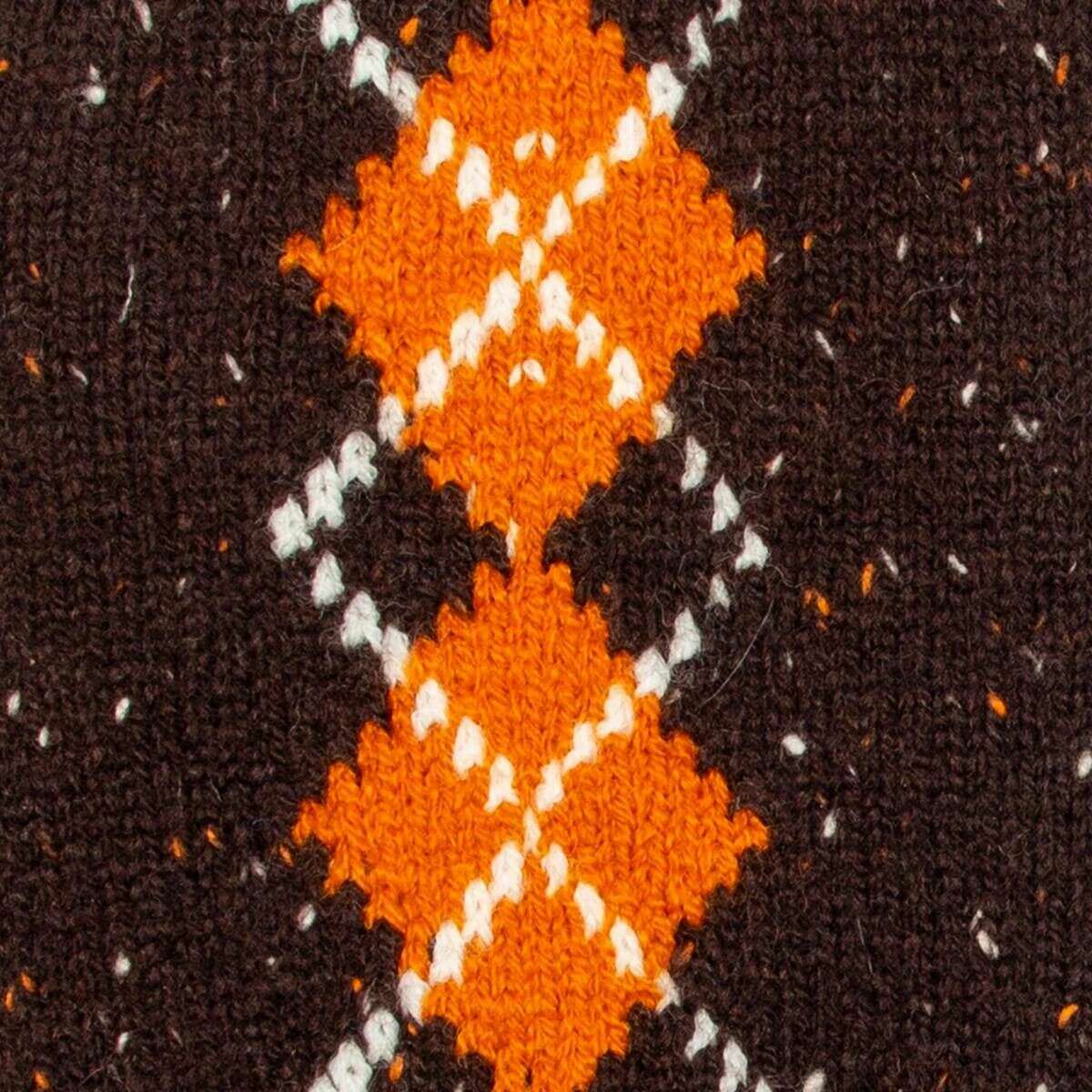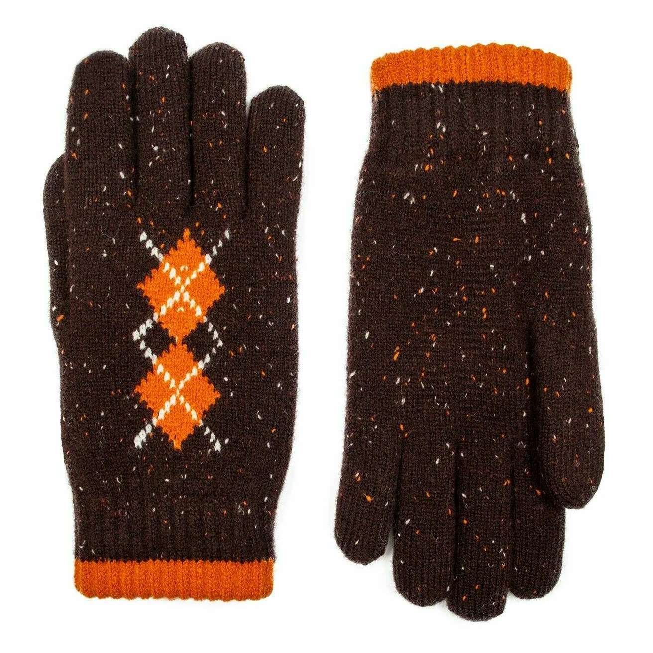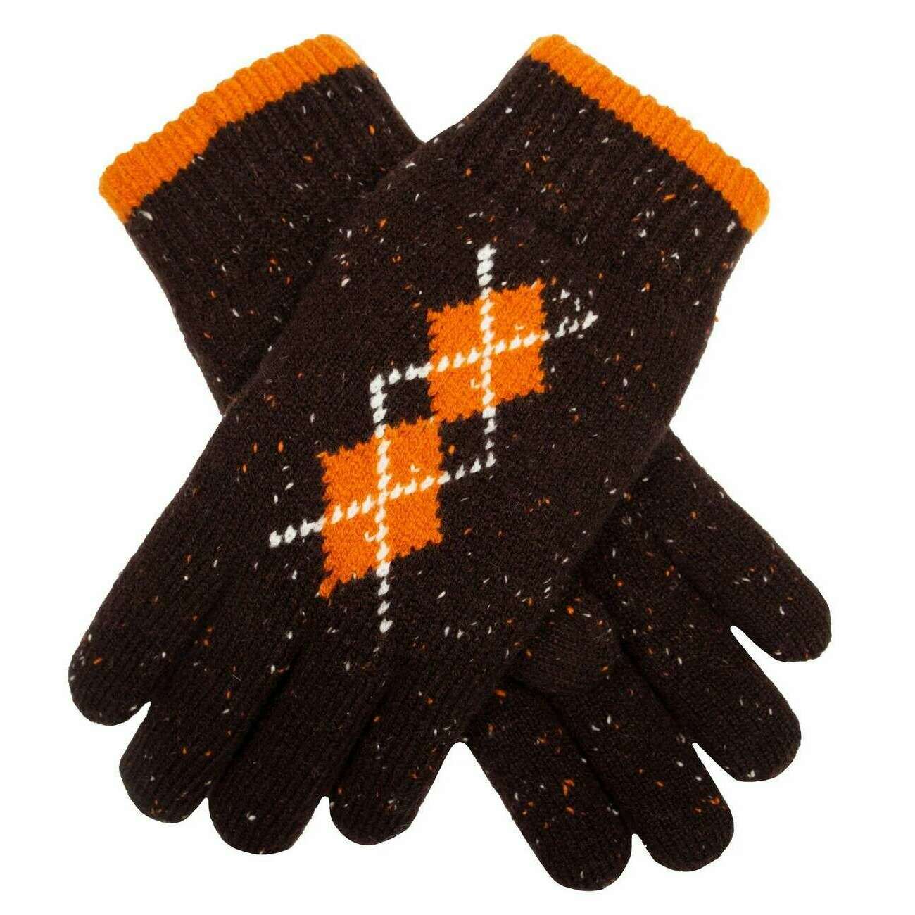 Dents Argyle Marl Yarn Knitted Gloves - Chocolate Brown/Pumpkin Orange