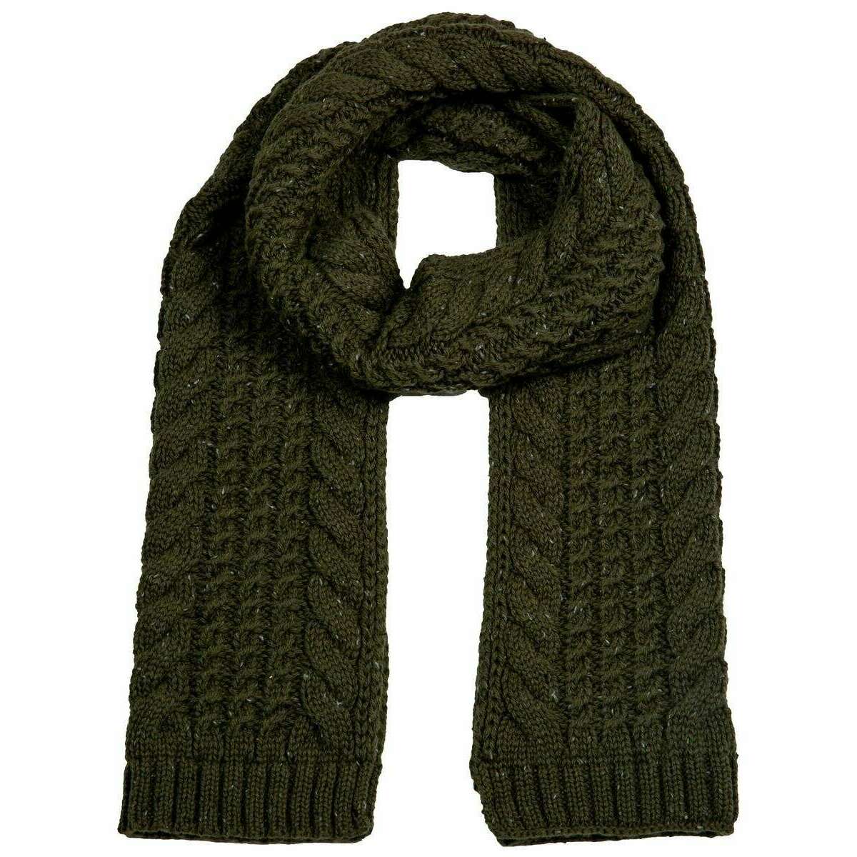 This cable knit scarf for men is fashioned by the brand Dents in a green colour and is made from 50% acrylic, 30% wool and 20% nylon. It measures 170cm(height) x 30cm(width). Also the olive green scarf is designed in a plain pattern, It is recommended to hand wash only to keep this scarf in good condition. All the scarves come complete in dents packaging. The Dents Cable Knit Scarf - Olive Green is crafted from a wool blend which ensures complete warmth and comfort during the colder seasons. This piece is a must-have as it is a convenient and quick way of keeping warm as it can just be thrown on when walking out the door whether that is on top of a coat or instead of one as this is one to make sure you are never cold due to the great insulation to trap heat. This beautiful design is a traditional cable-knit with the additional pattern of flecks due to the marl yarn.