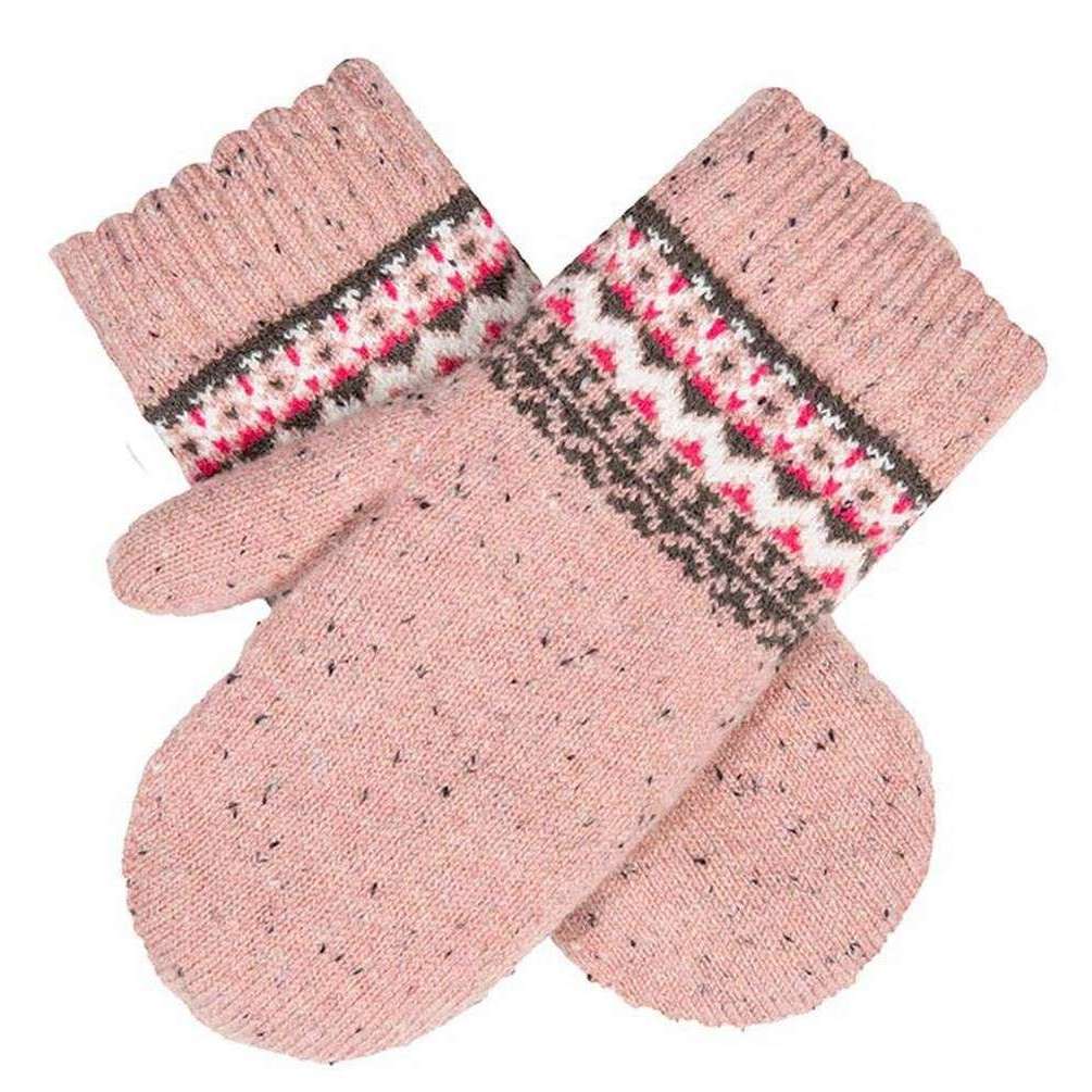 Dents Fair Isle Wool Blend Knitted Mittens - Rose Pink