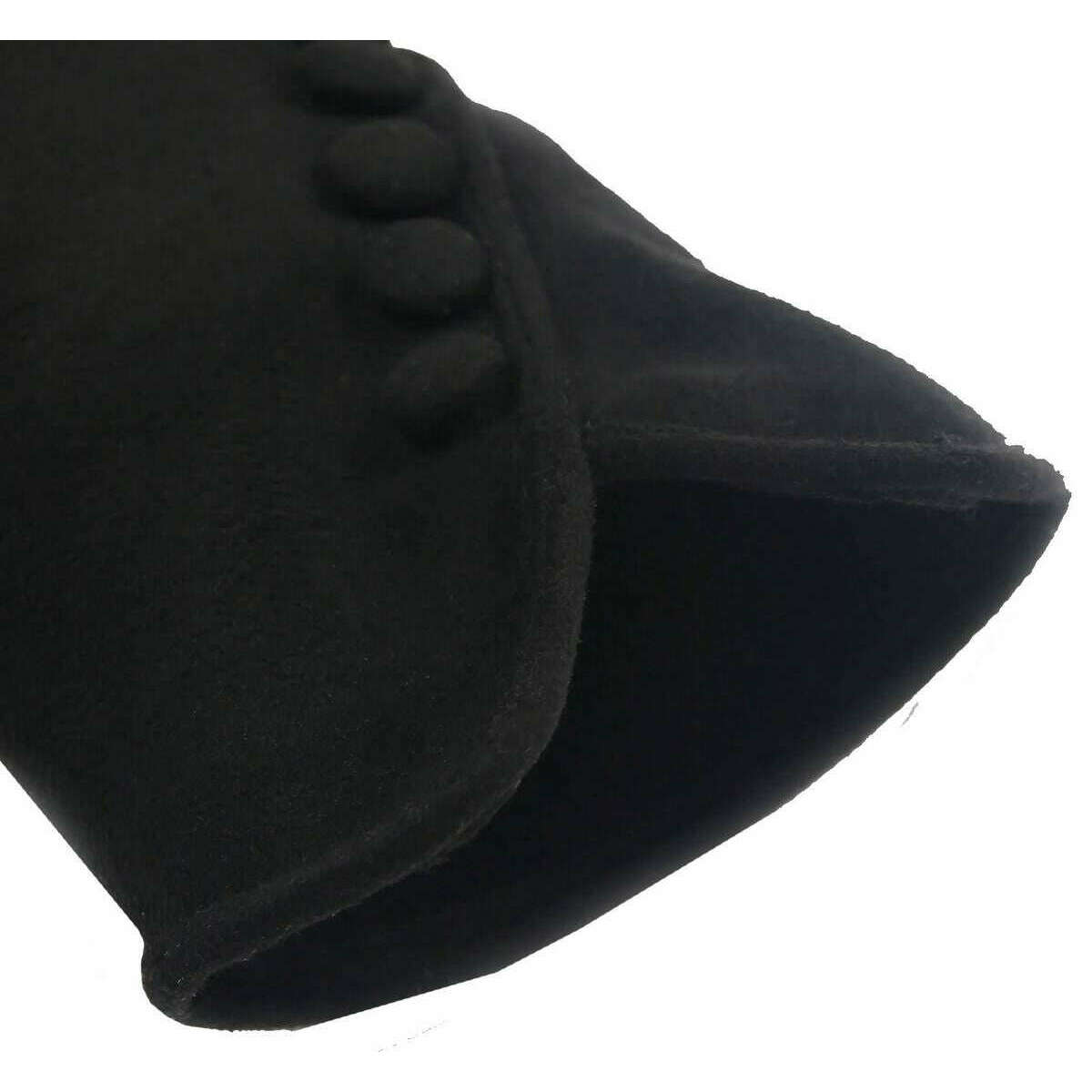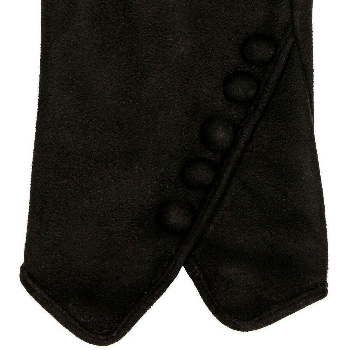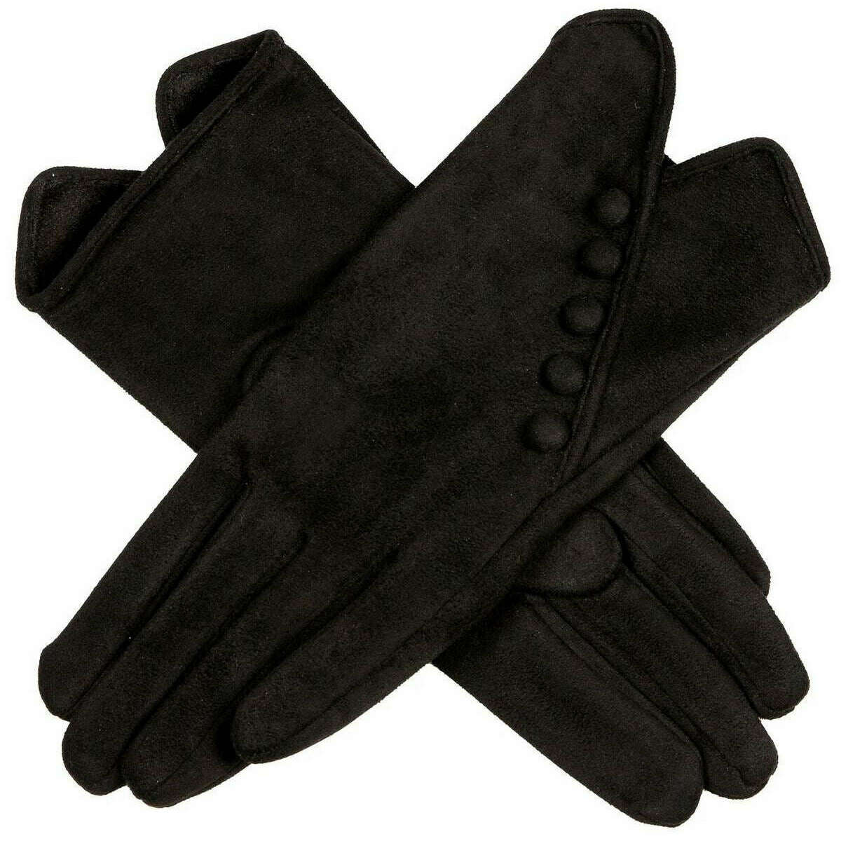 These women's faux suede button gloves by the brand Dents are made from 90% polyester and 10% spandex and are showcased in black. Also the black/black gloves are designed in a plain pattern, It is recommended to hand wash only to keep these gloves in good condition. All the gloves come complete in dents packaging. The Dents Faux Suede Button Gloves - Black/Black make an ideal choice for all winter occasions with their beautifully feminine V-shaped cuff and decorative buttons, as well as striking colour. Lined with gorgeous velour to bring your hands stunning softness and cosy warmth. Offering seasonal elegance these gloves will look beautiful with all of your winter wears.