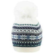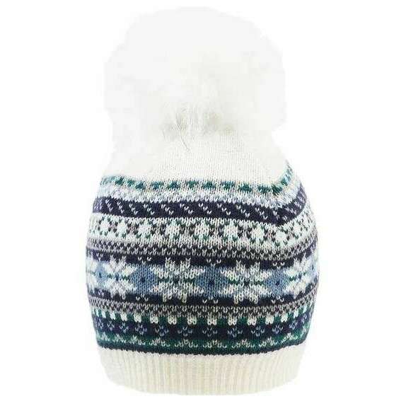 Dents Jacquard Fair Isle Faux Fur Pom Pom Knitted Bobble Hat - Winter White