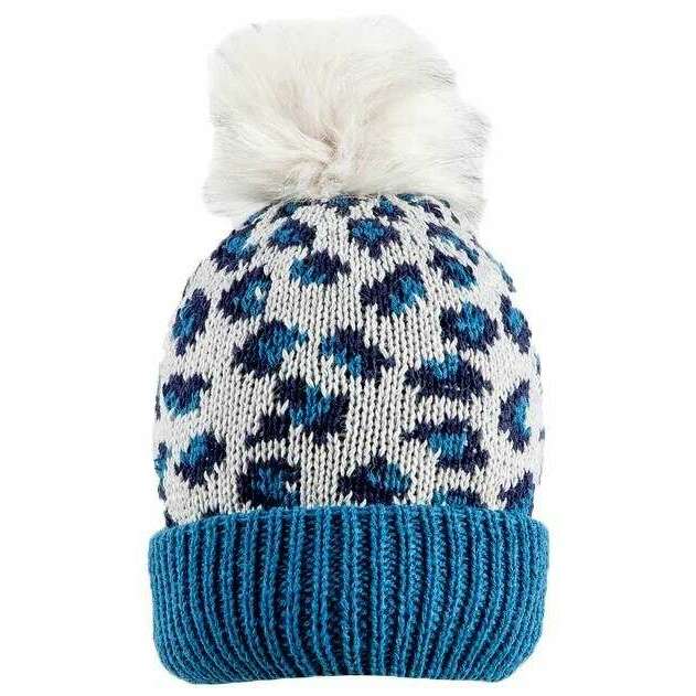 This well made women's jacquard leopard print pattern and faux fur pom pom knitted bobble hat from Dents comes in a navy colour and is manufactured from 80% acrylic and 20% nylon. Also the navy hat is designed in a unique pattern, It is recommended to hand wash only to keep this hat in good condition. All the hats come complete with dents packaging. The Dents Jacquard Leopard Print Pattern and Faux Fur Pom Pom Knitted Bobble Hat - Navy is a stylish piece to add a modern look to your collection for the colder seasons due to the fun leopard print design. Lined with soft sponge yarn and crafted with an upturned ribbed brim makes sure that your head and ears are cosy and warm at all times, protecting you from the coldest of weathers.