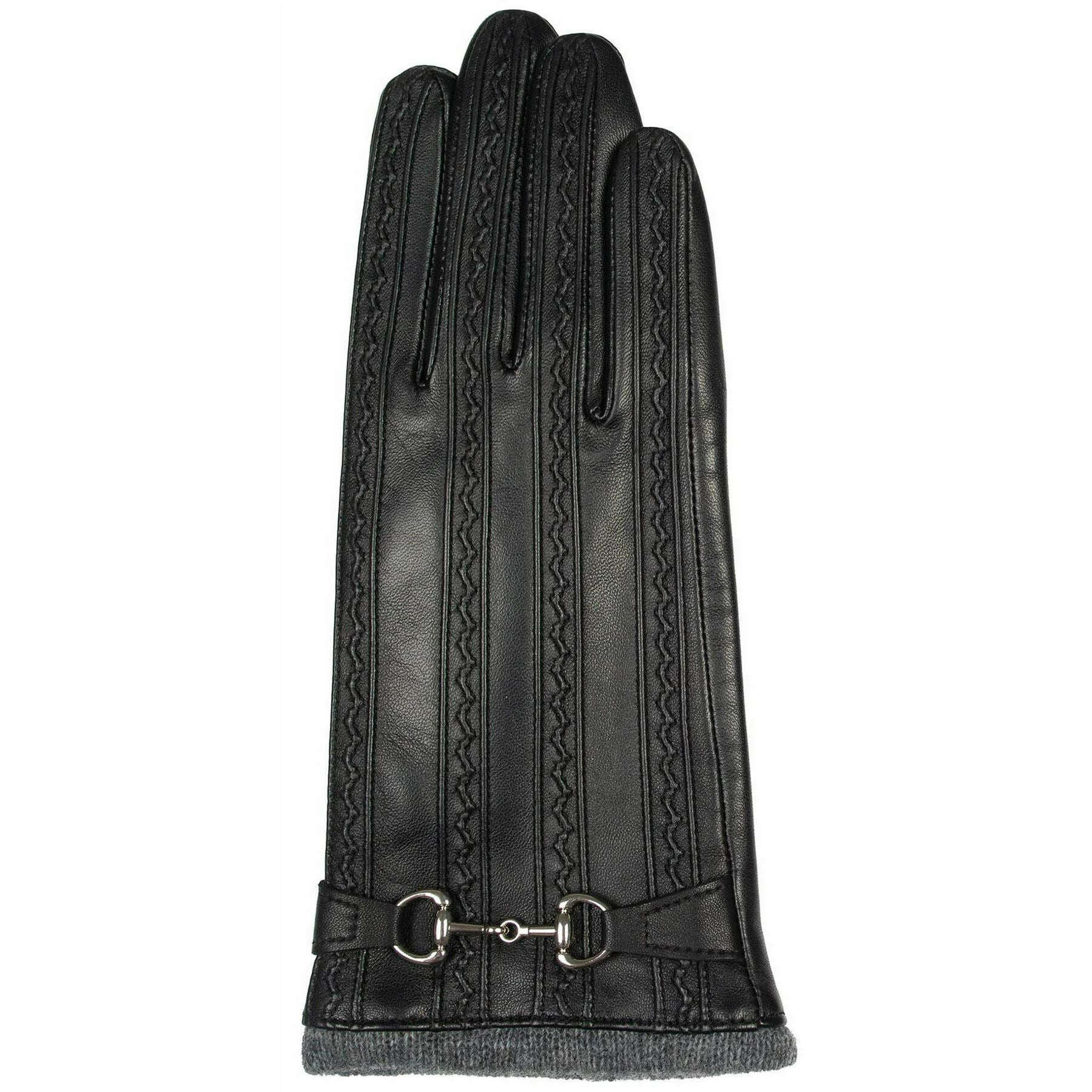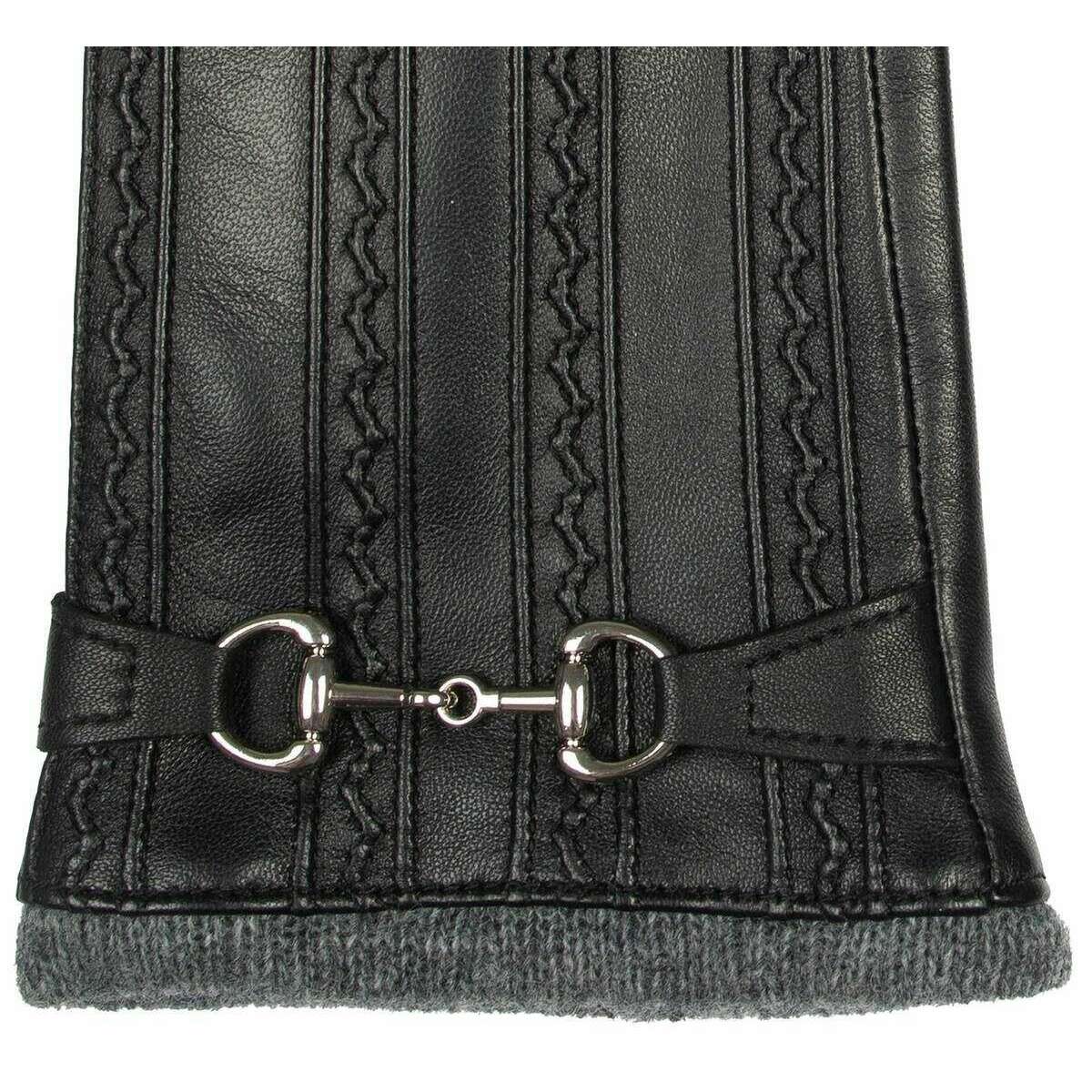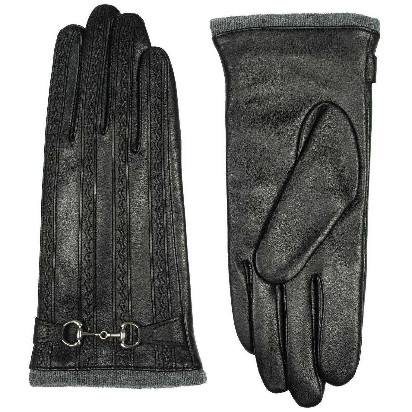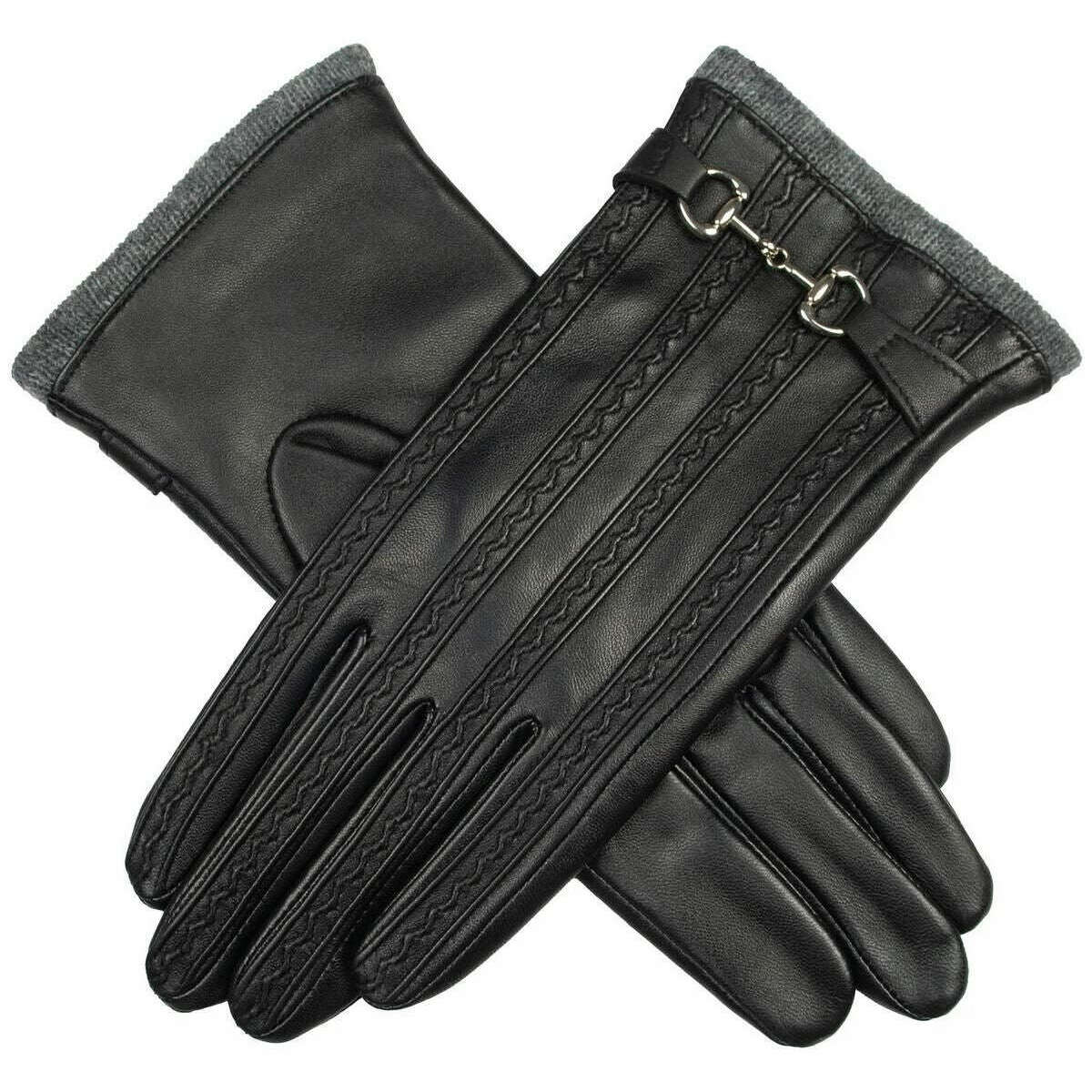 Introducing these women's keira touchsreen and water-resistant gloves by Dents, they are manufactured from 100% hairsheep leather and 80% wool and 20% nylon lining in a black colour. Also the black gloves are designed in a plain pattern, All the gloves come complete with dents tags. The Dents Keira Touchsreen and Water-Resistant Gloves - Black are the perfect winter wear that are both stylish and practical. Touchscreen technology allows you to use your devices without having to expose your hands to the cold. This pair features a water-resistant finish, a stitch detailing, a knitted cuff and a decorative snaffle for a refined and sophisticated look. These gloves are an ideal accessory for those looking to add a touch of elegance and practicality to their cold-weather wardrobe.