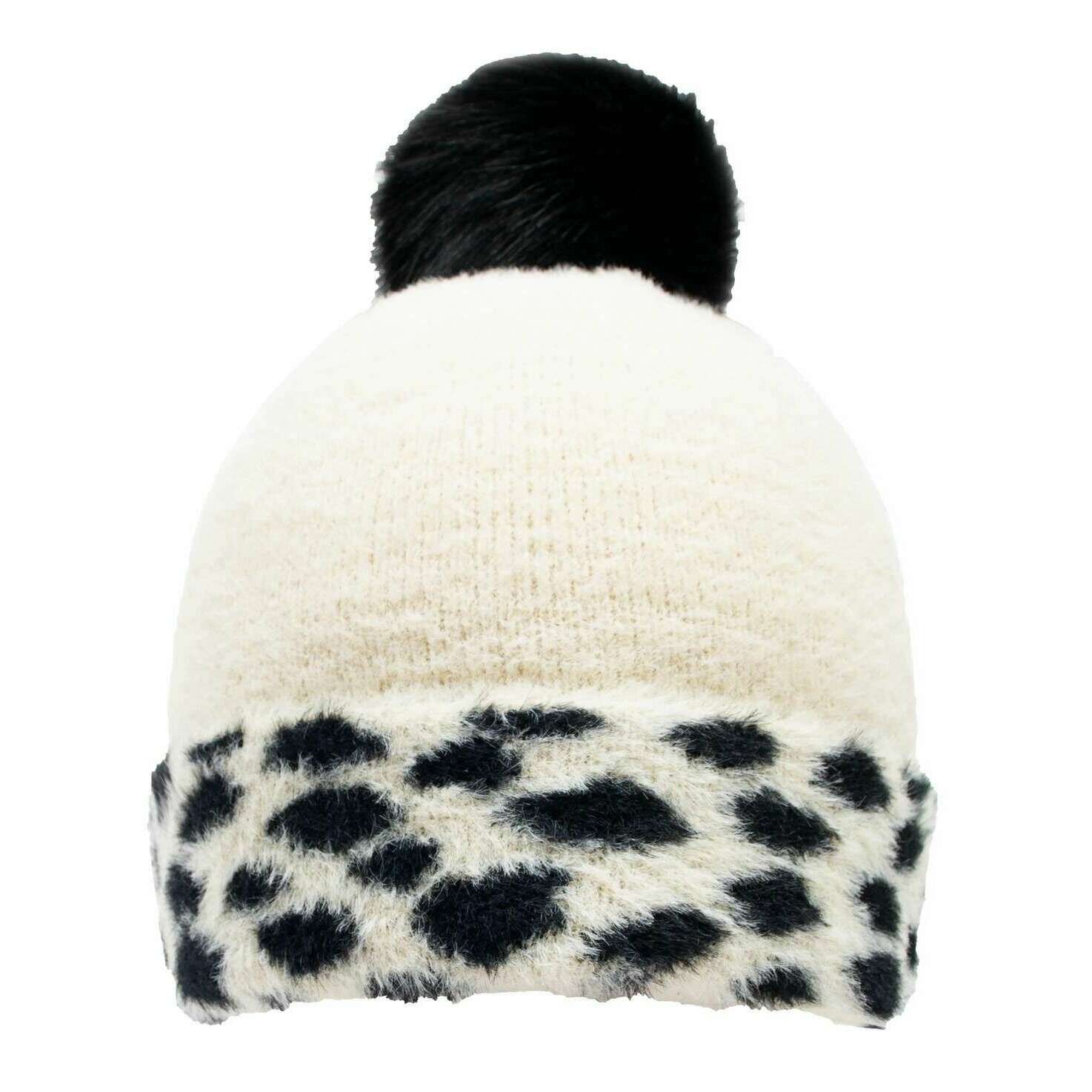 This well made women's knitted spotty bobble hat from Dents comes in a ivory white colour and is manufactured from 100% nylon. Also the ivory white hat is designed in a spots pattern, It is recommended to hand wash only to keep this hat in good condition. All the hats come complete with dents tags. The Dents Knitted Spotty Bobble Hat - Ivory White is a stylish piece to add a modern look to your collection for the colder seasons due to the fun faux fur pom pom on the top and the trendy white and black leopard print design. An upturned ribbed brim makes sure that your head and ears are cosy and warm at all times, protecting you from the coldest of weathers.