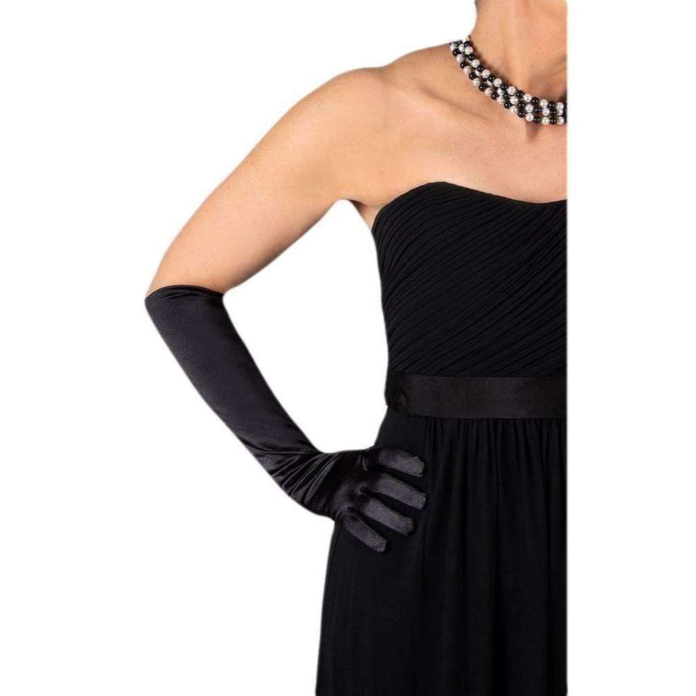 Dents Long Satin Elbow Length Evening Gloves - Black