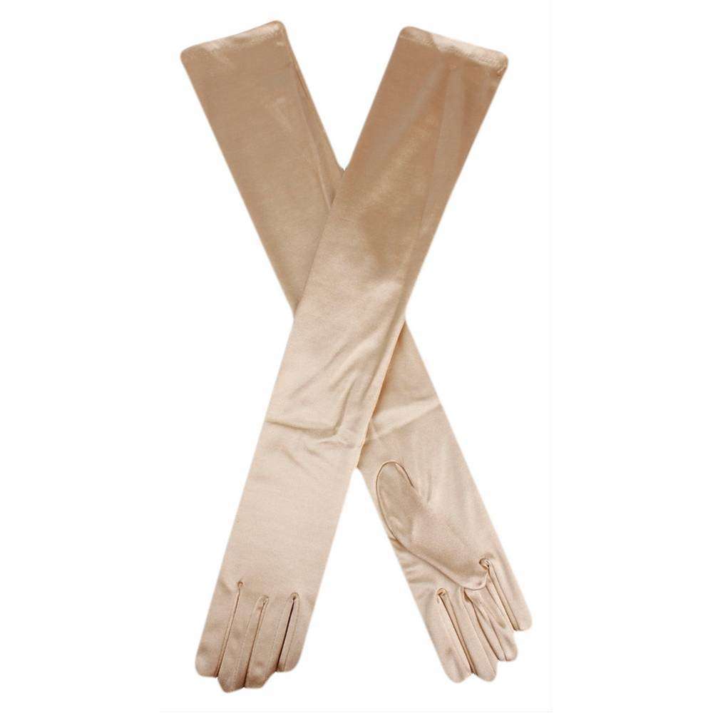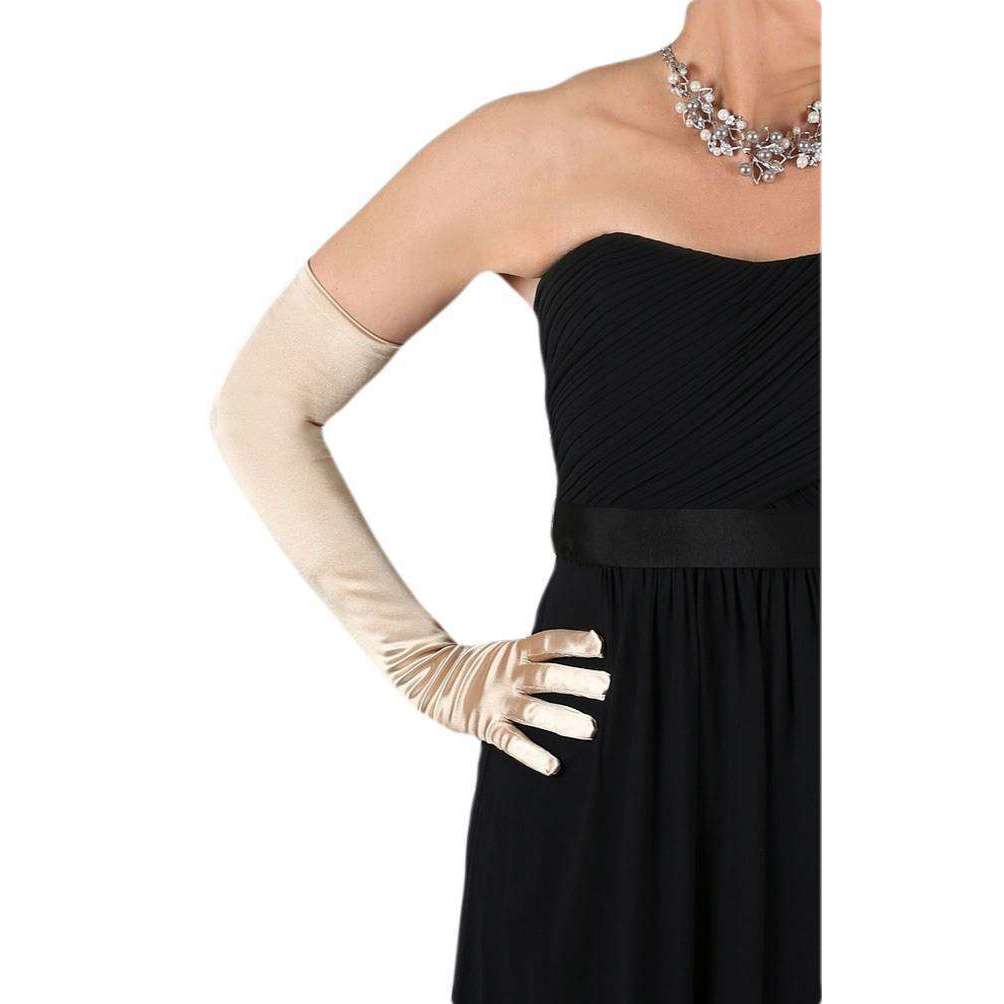 Dents Long Satin Shoulder Length Evening Gloves - Gold
