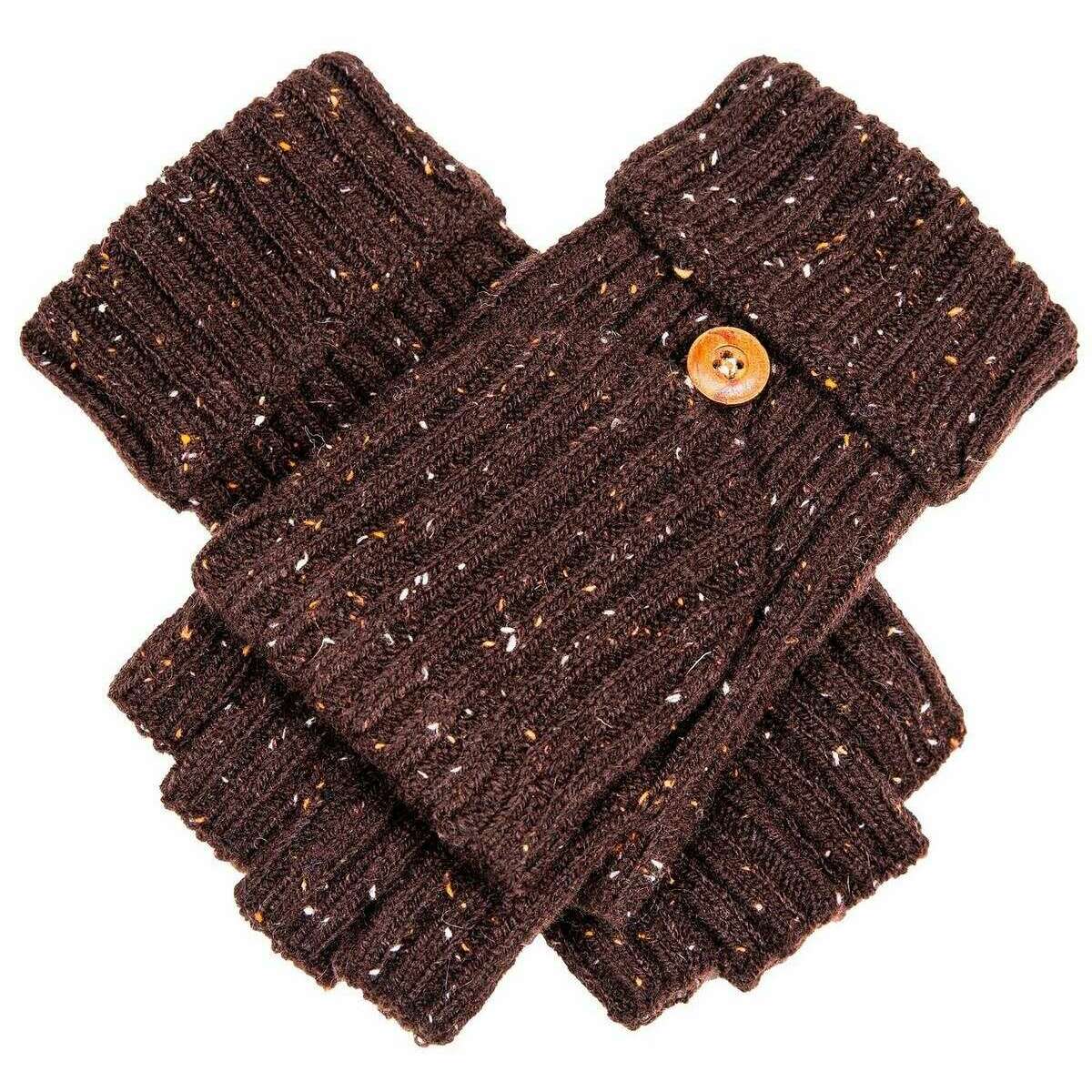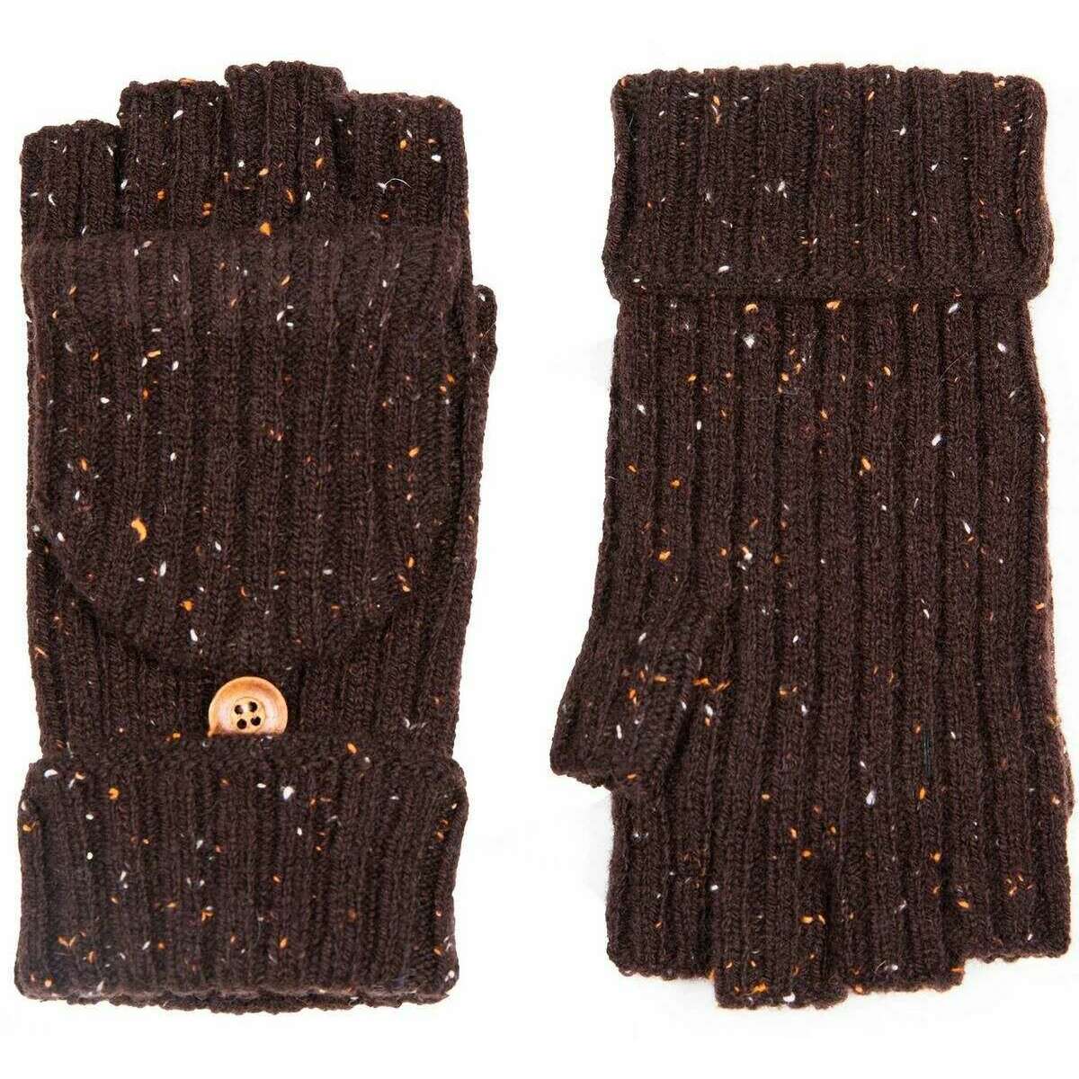 Dents Marl Yarn Half Finger Gloves - Chocolate Brown