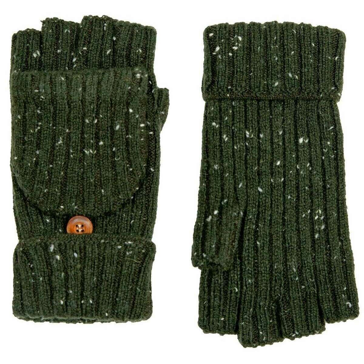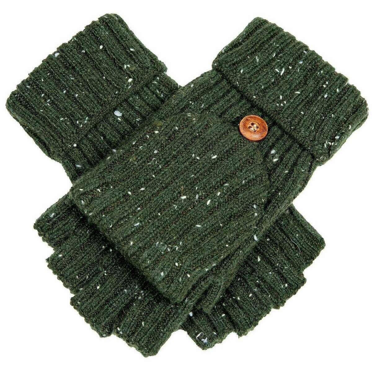 Dents Marl Yarn Half Finger Gloves - Olive Green