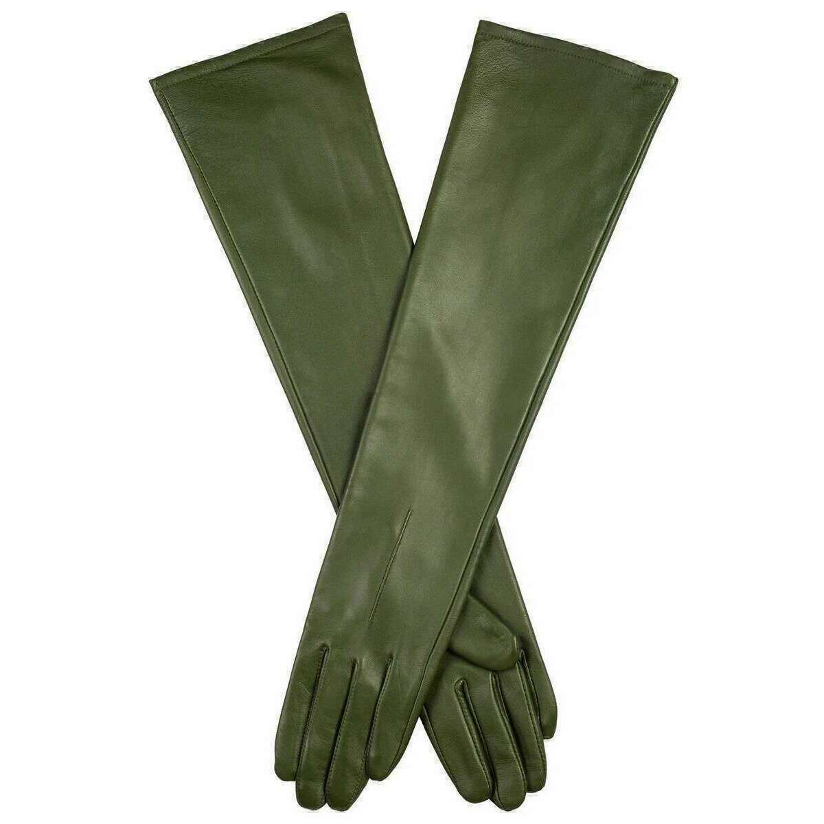 Dents Mia Single Point Long Above Elbow Leather Gloves - Forest Green