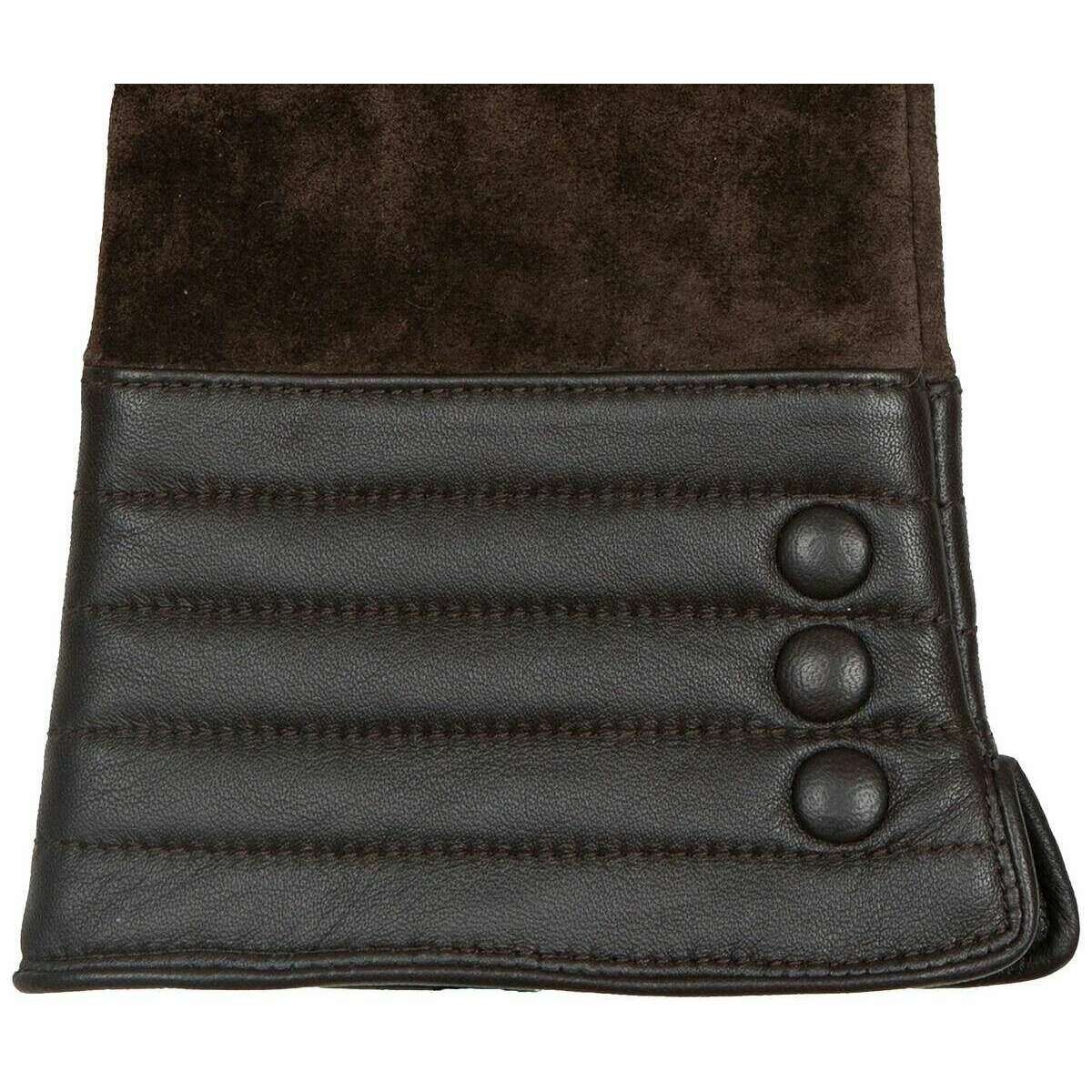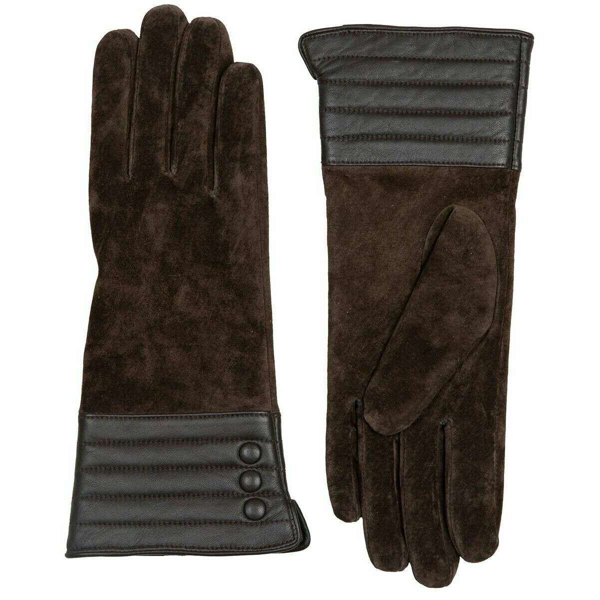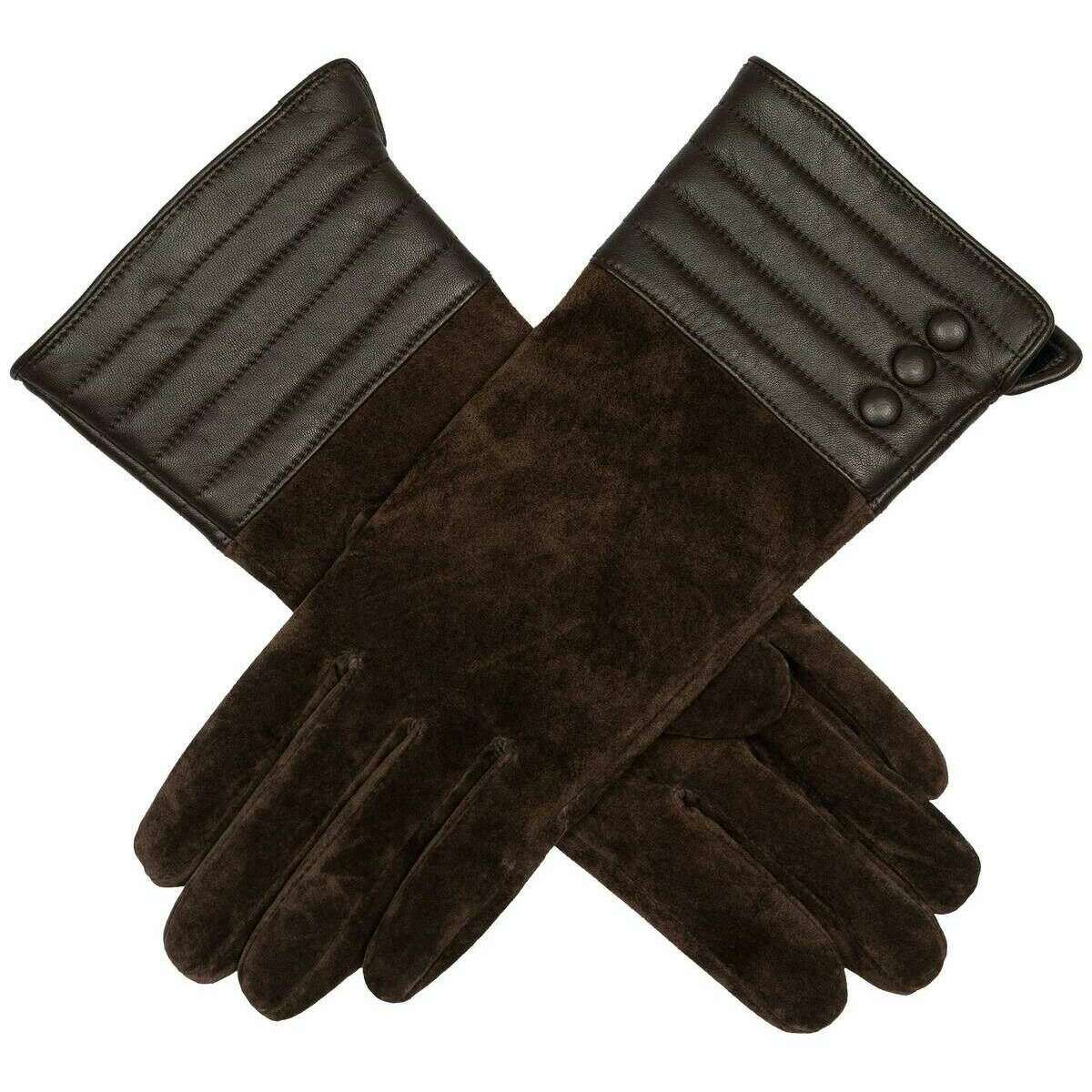 These well made women's olivette touchscreen water resistant suede gloves from Dents come in a mocca brown colour and are manufactured from pig suede, 100% hairsheep leather and acrylic. Also the mocca brown gloves are designed in a plain pattern, All the gloves come complete in dents packaging. The Dents Olivette Touchscreen Water Resistant Suede Gloves - Mocca Brown have been designed to give their wearer confidence and style when out and about in the cold weather. Their quilted leather cuffs showcase stitching details and elegant buttons for timeless decoration. They feature a waterproof barrier which gives them protection against the elements, keeping your hands dry. Touchscreen technology on the index finger allows you to use your device without having to remove the glove, ideal for all occasions.