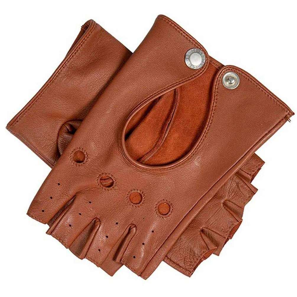 Dents Paris Hairsheep Leather Half Finger Driving Gloves - Cognac Tan