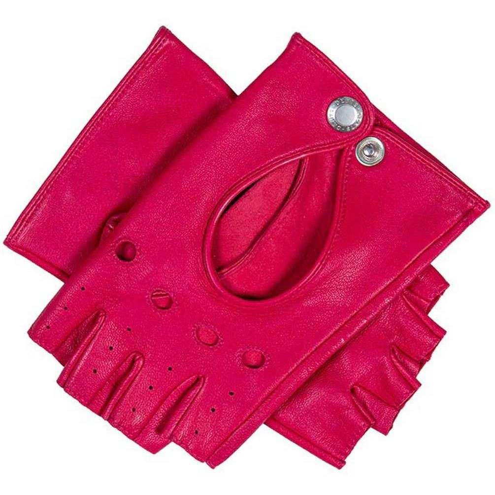 Dents Paris Hairsheep Leather Half Finger Driving Gloves - Fuchsia Pink