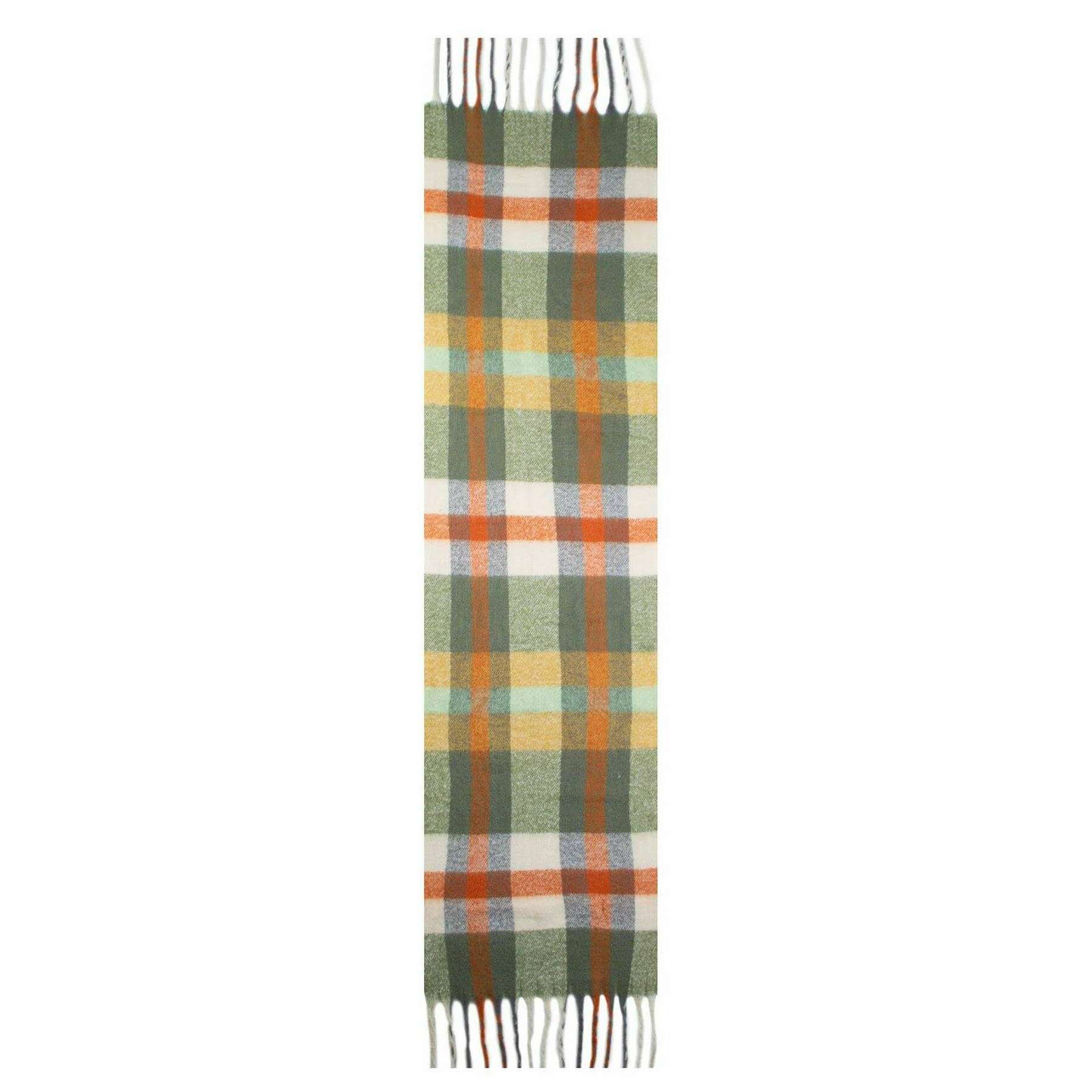 Dents Plaid Check Blanket Scarf - Olive Green/Orange